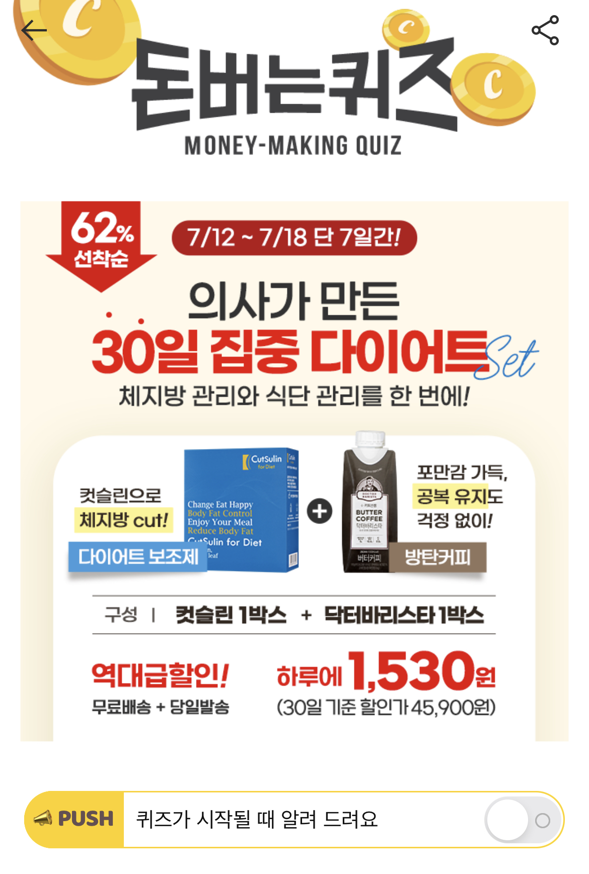 캐시워크 돈버는퀴즈 정답 컷슬린 포 다이어트