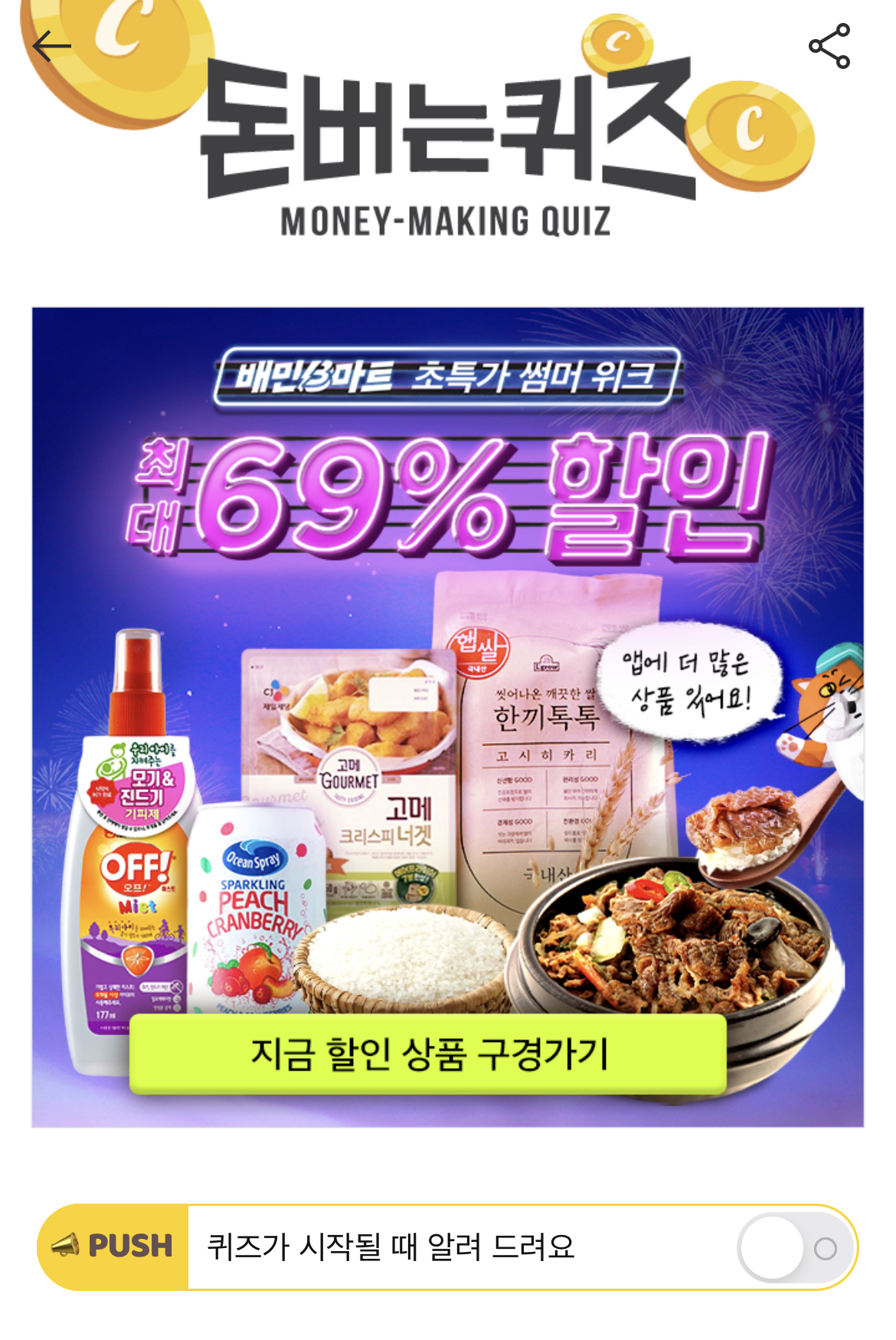캐시워크 돈버는퀴즈 정답 배민B마트 하겐다즈 커피 파인트