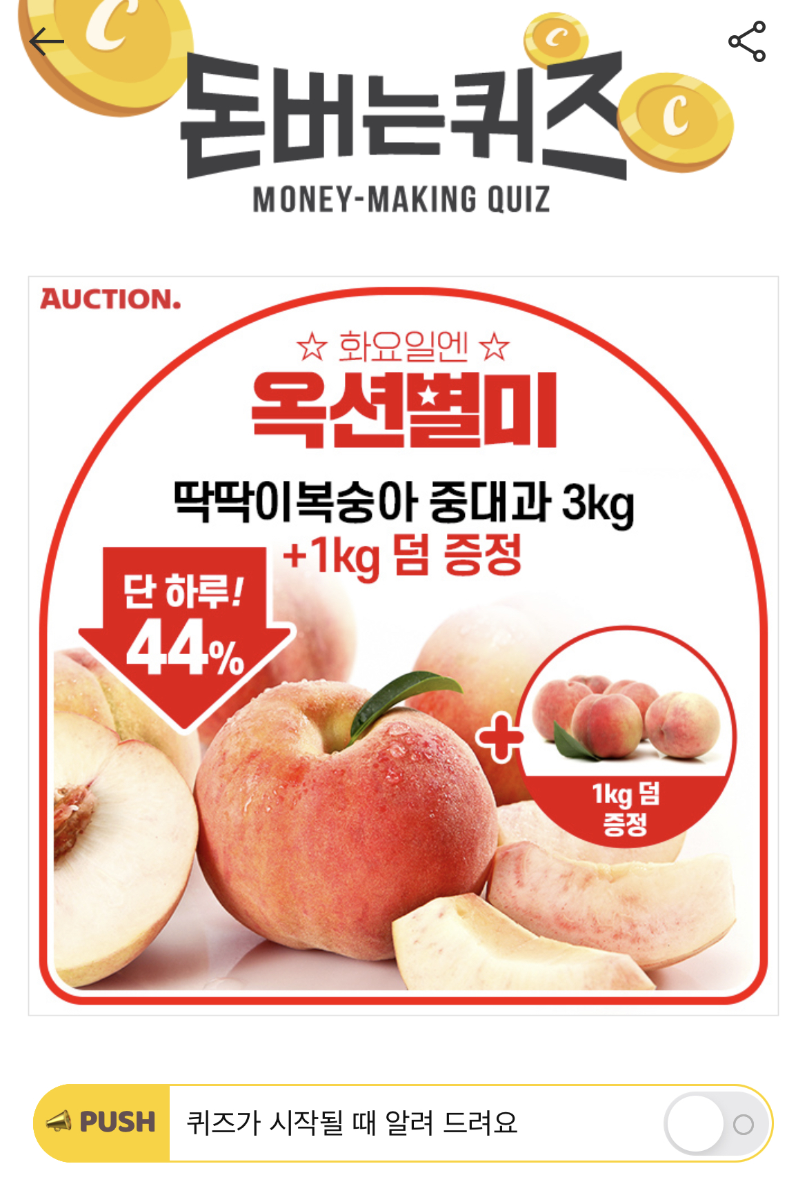 캐시워크 돈버는퀴즈 정답 옥션별미 딱딱이 복숭아 ㅎㄹㅅ/ㅂㅁㅈ/ㅂㅈㅂㅈ/ㅇㄱㅊ