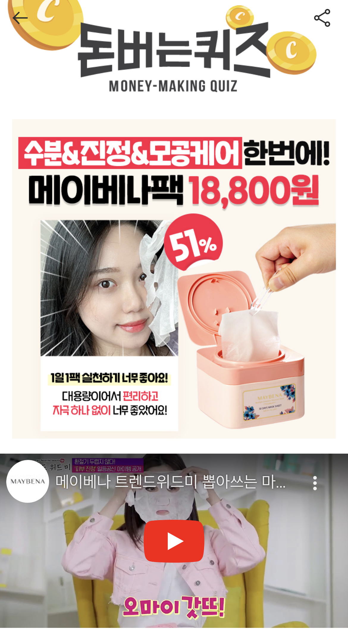 캐시워크 돈버는퀴즈 정답 메이베나팩 ㅌㅌㄹㅇ/ㅍㅂㅇㄷ
