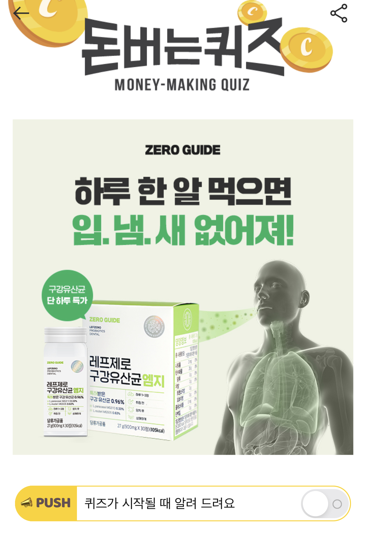 캐시워크 돈버는퀴즈 정답 레프제로 구강유산균