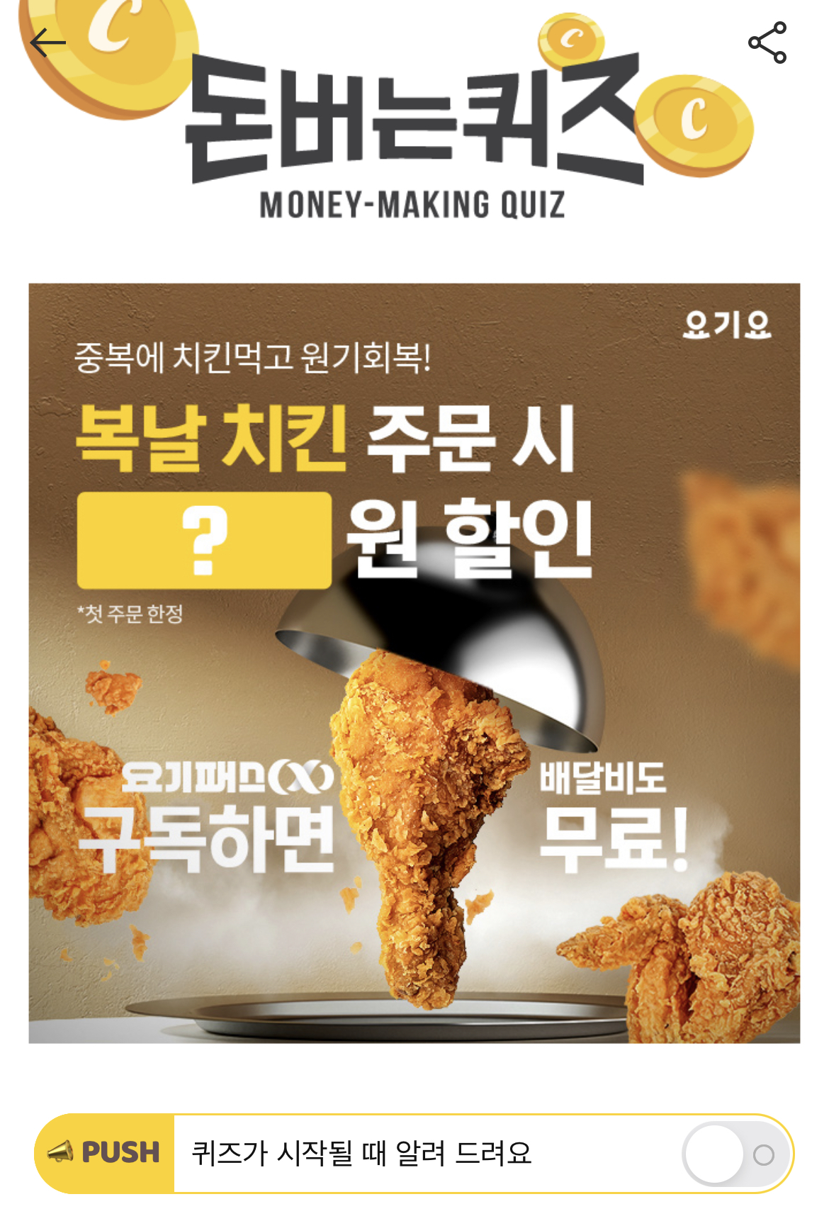 딱 7월만! 지금 가입하고, 복날 치킨 즉시 할인받자!