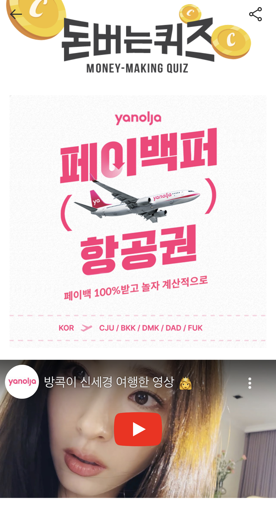 캐시워크 돈버는퀴즈 정답 야놀자 초특가