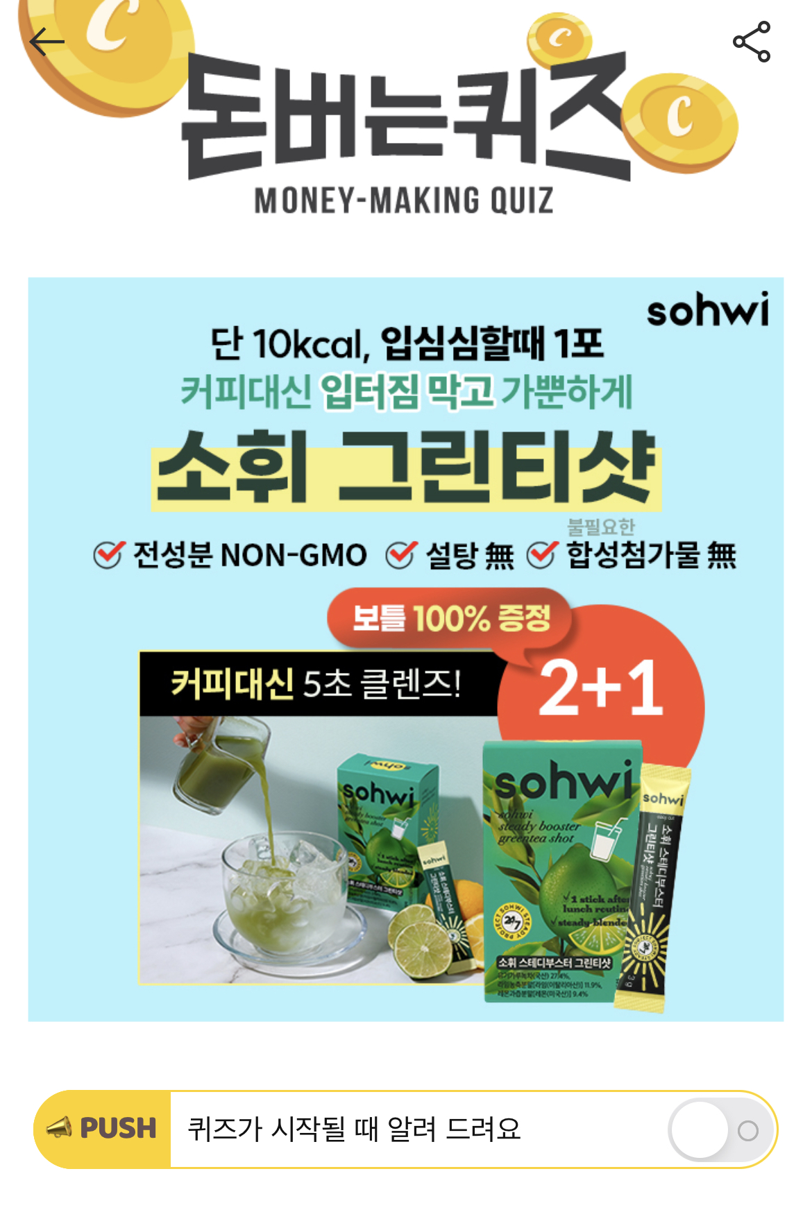 캐시워크 돈버는퀴즈 정답 소휘 그린티샷