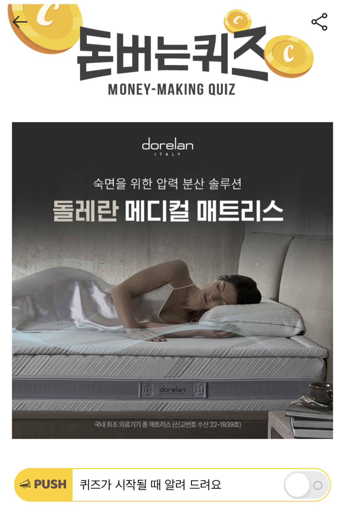 캐시워크 돈버는퀴즈 정답 돌레란 매트리스 ㅁ