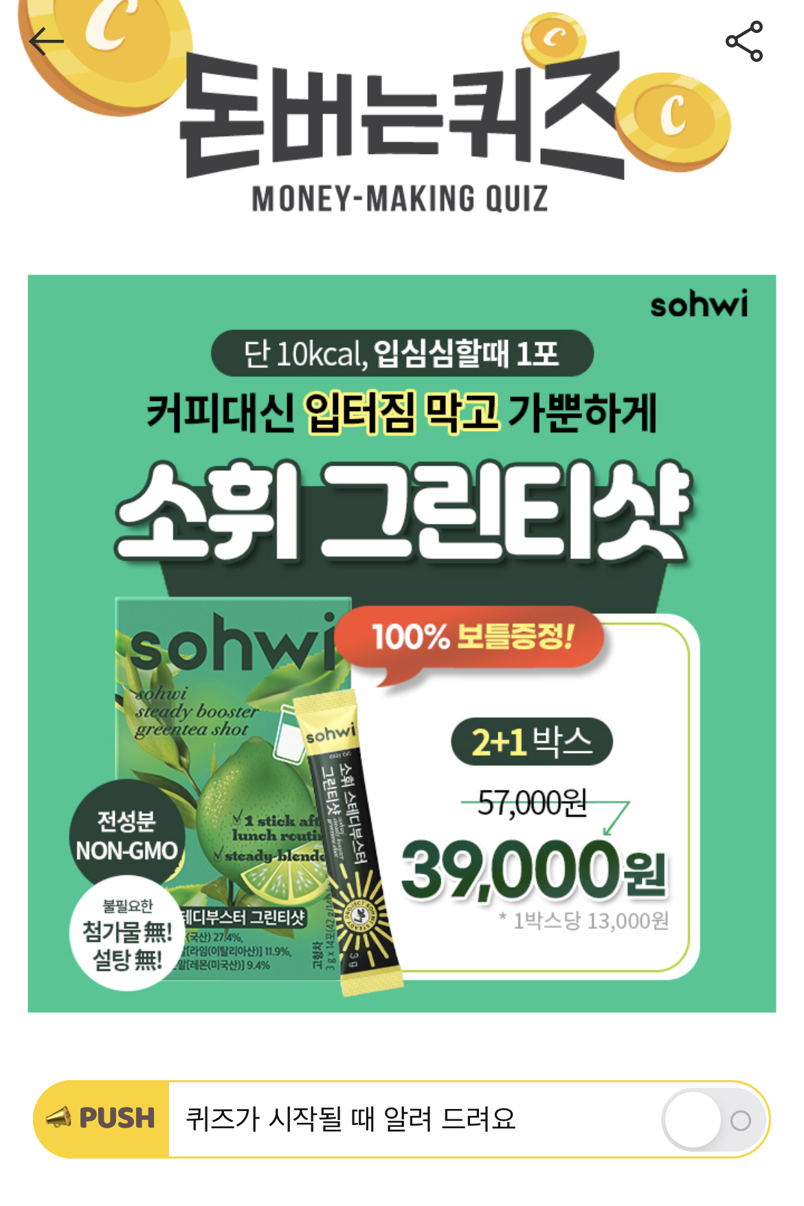 캐시워크 돈버는퀴즈 정답 소휘 그린티샷