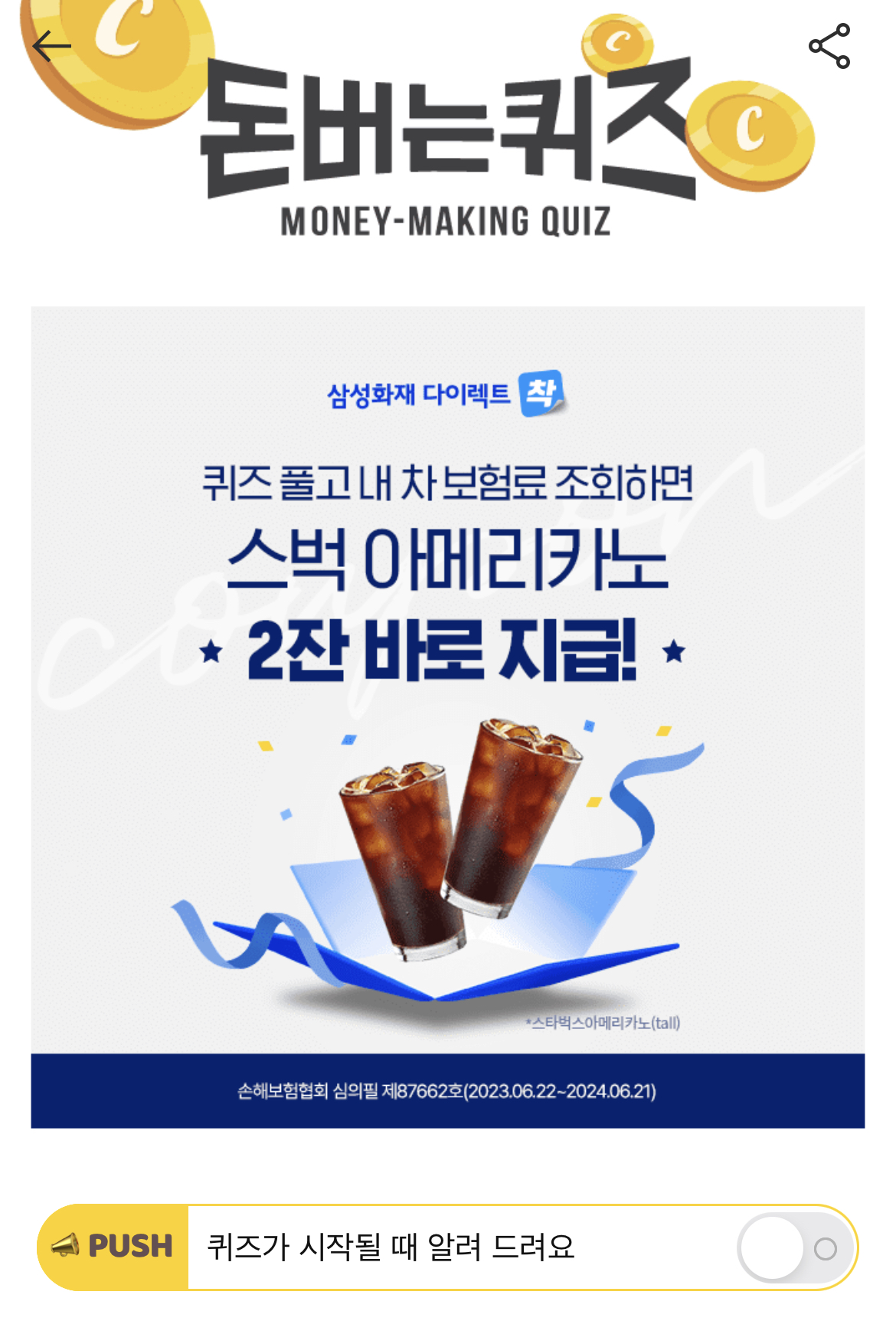 캐시워크 돈버는퀴즈 정답 삼성화재 다이렉트 자동차보험