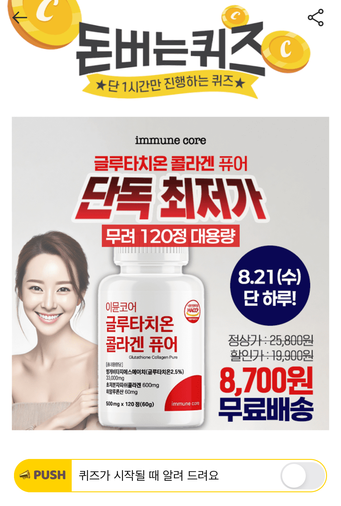 캐시워크 돈버는퀴즈 정답 글루타치온 콜라겐 퓨어