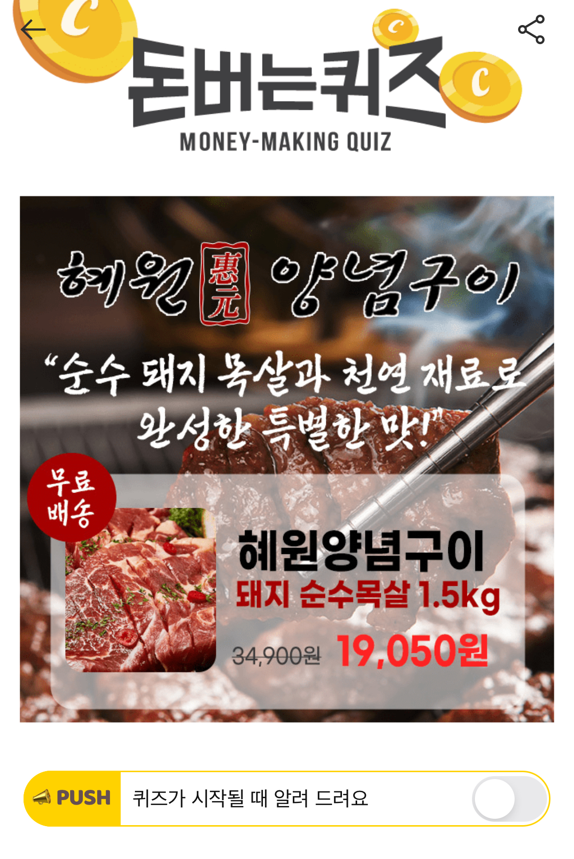 캐시워크 돈버는퀴즈 정답 혜원 양념구이
