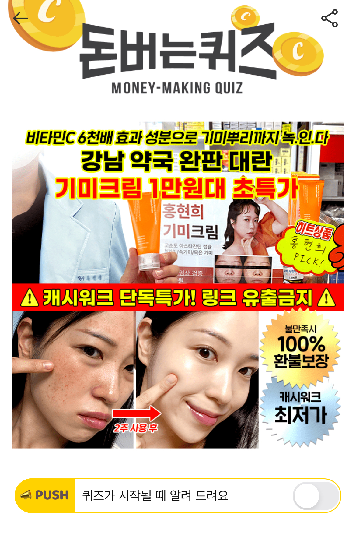 캐시워크 돈버는퀴즈 정답 성분에디터 강남약국완판 홍현희기미크림