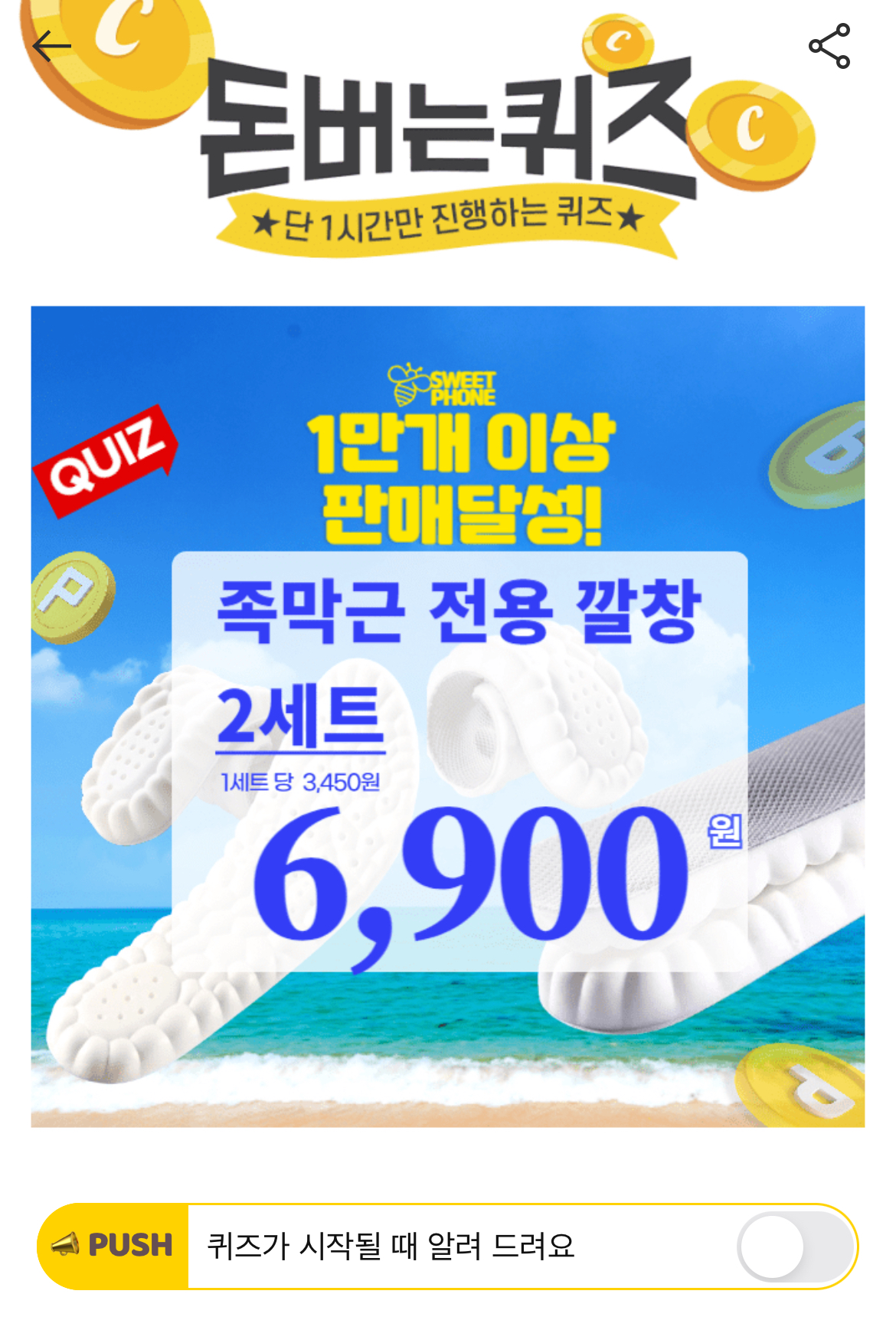 캐시워크 돈버는퀴즈 정답 족저근 구름 깔창