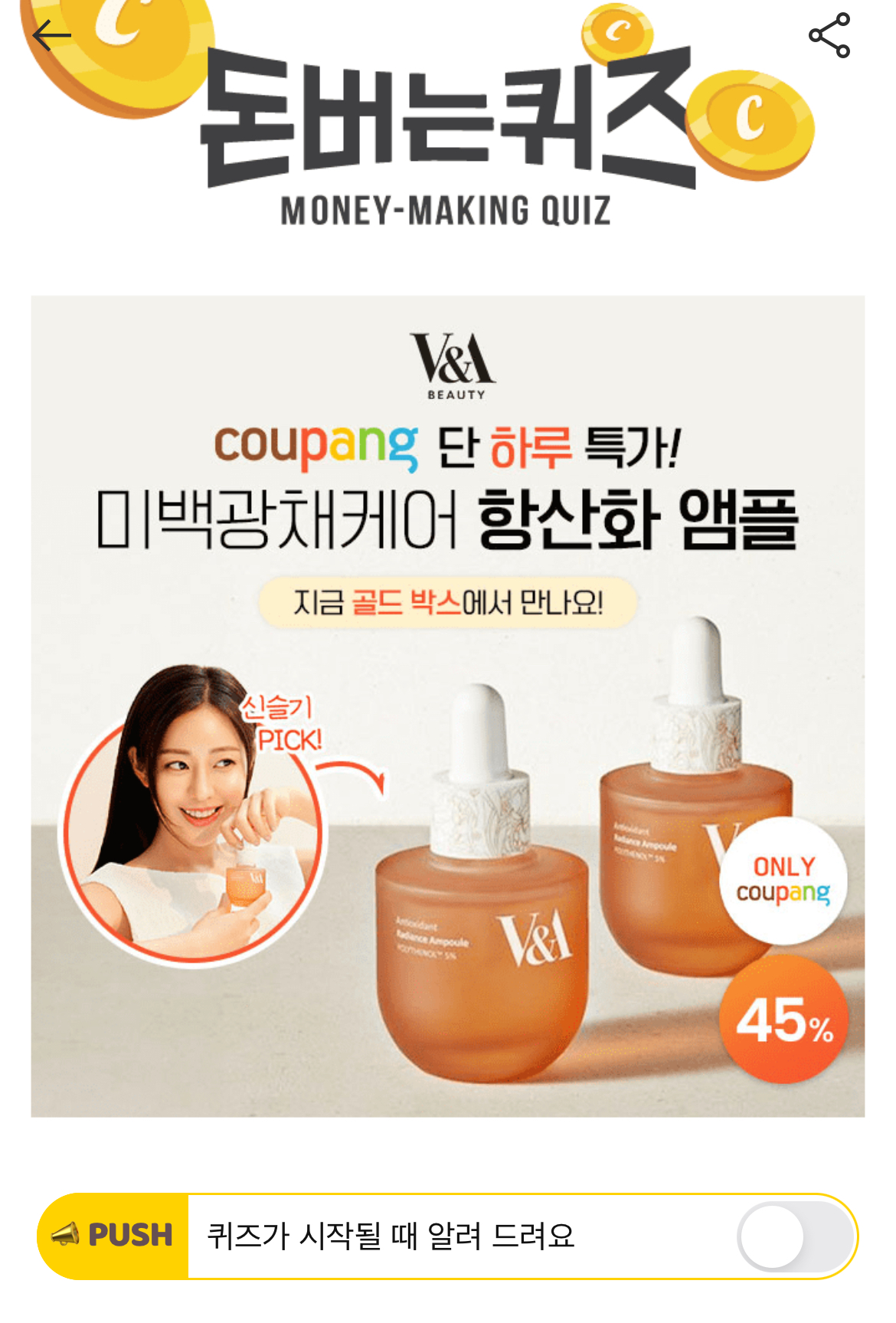 캐시워크 돈버는퀴즈 정답 V&A 항산화 앰플 ㅁㅂ