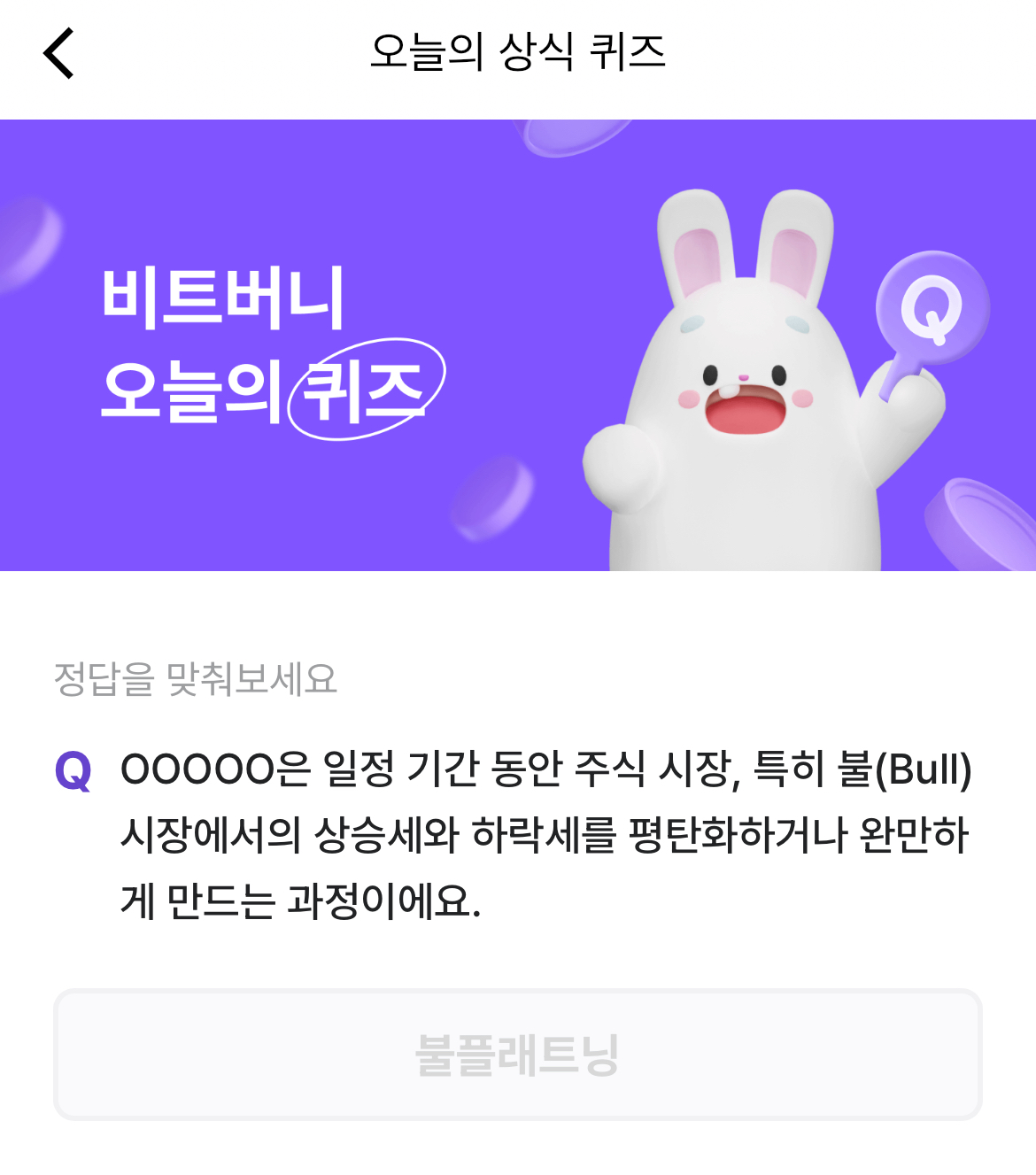 비트버니 코인이 쌓이는 퀴즈 정답 ㅊㄱㄹ