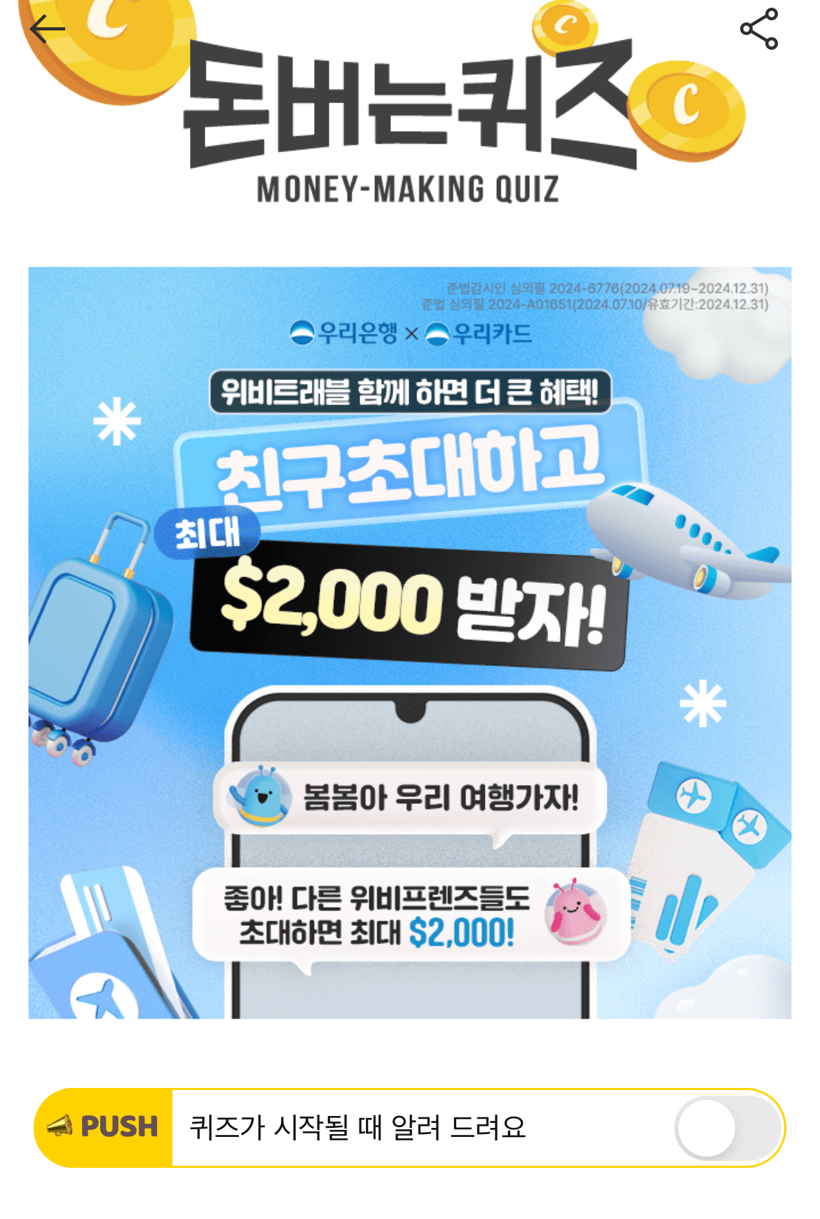 캐시워크 돈버는퀴즈 정답 우리은행 위비트래블 숫자