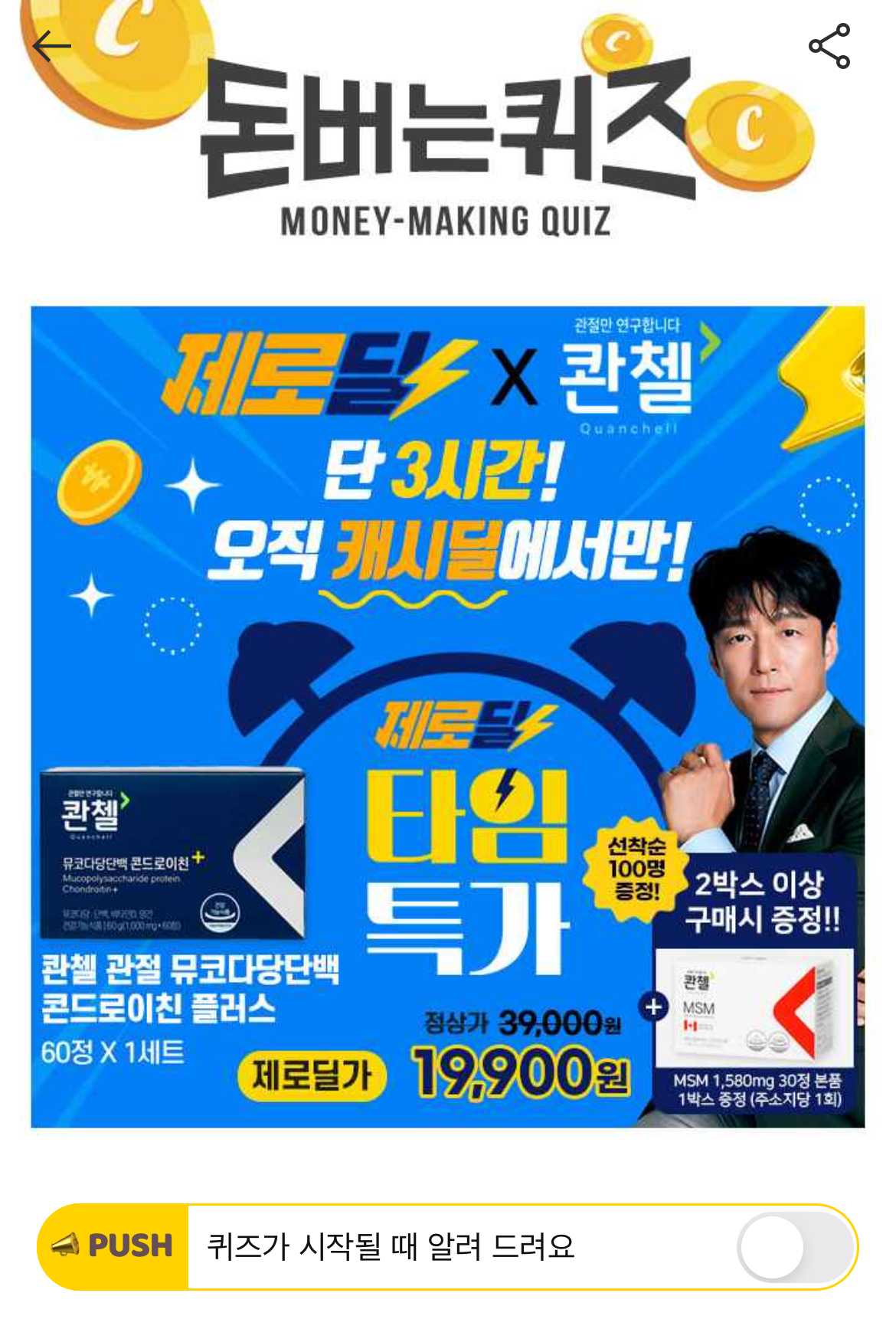 캐시워크 돈버는퀴즈 정답 콴첼 뮤코다당단백