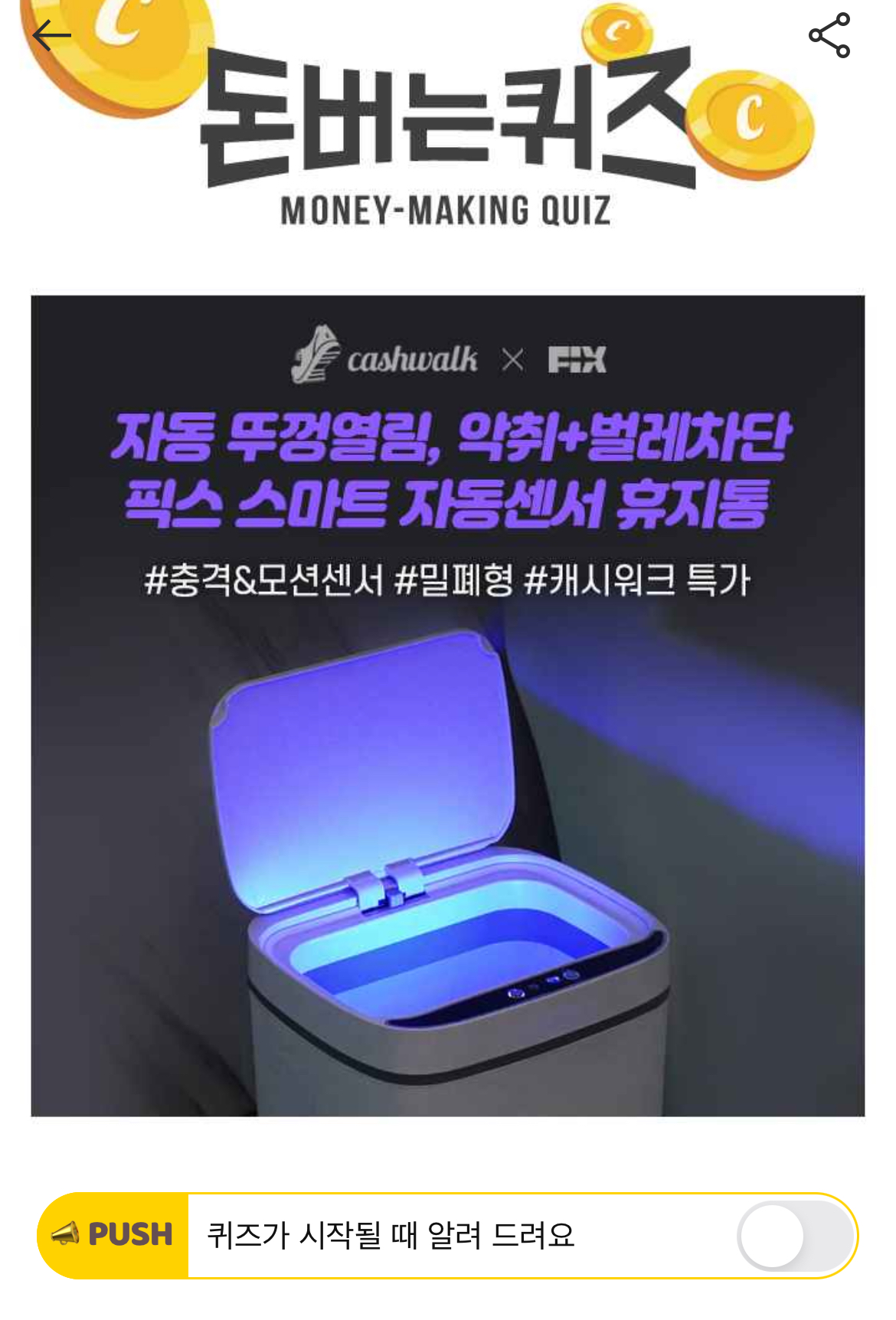 캐시워크 돈버는퀴즈 정답 픽스 자동휴지통 ㅋㅂㅇㄹ