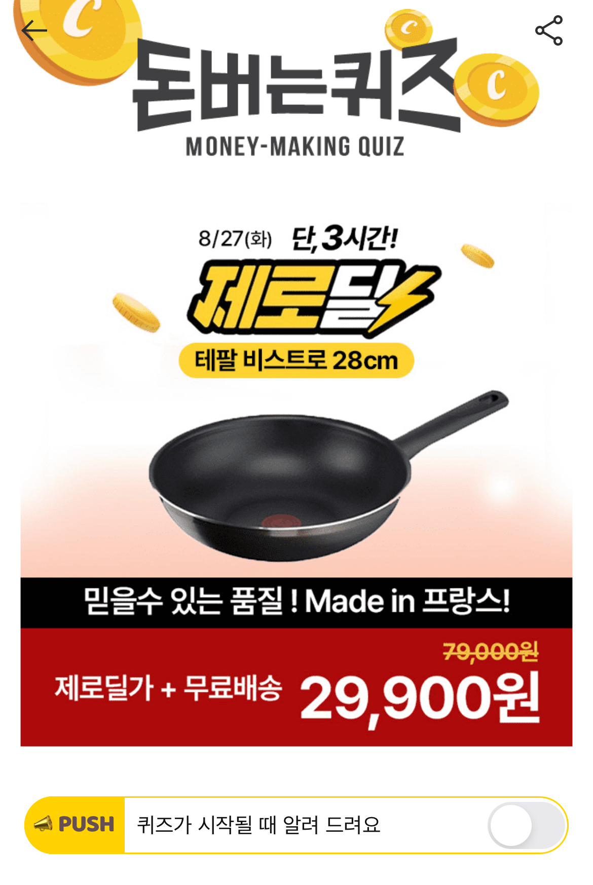 캐시워크 돈버는퀴즈 정답 테팔 비스트로 궁중팬