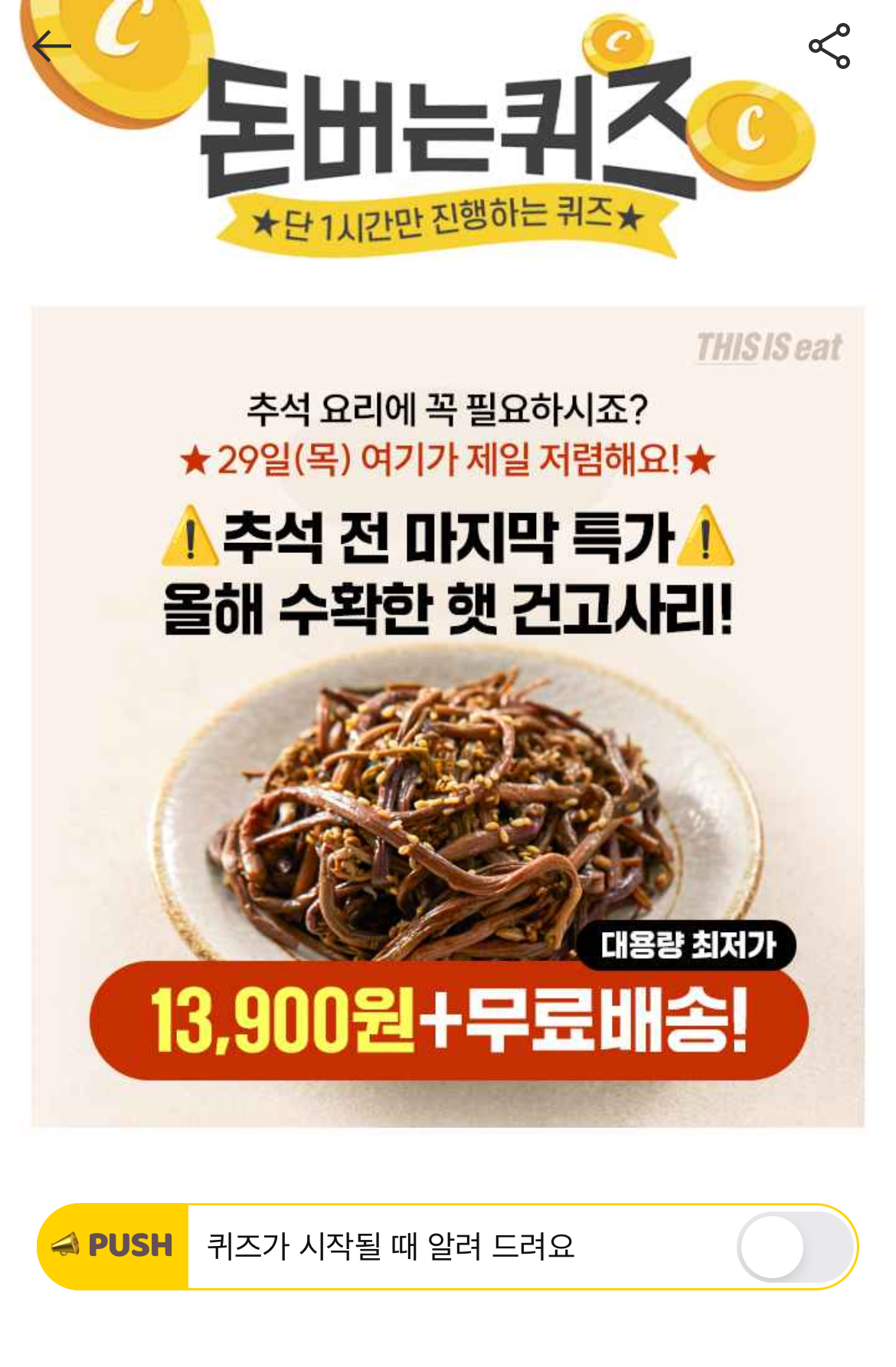 캐시워크 돈버는퀴즈 정답 캐시딜 타임특가 디스이즈 햇 건고사리