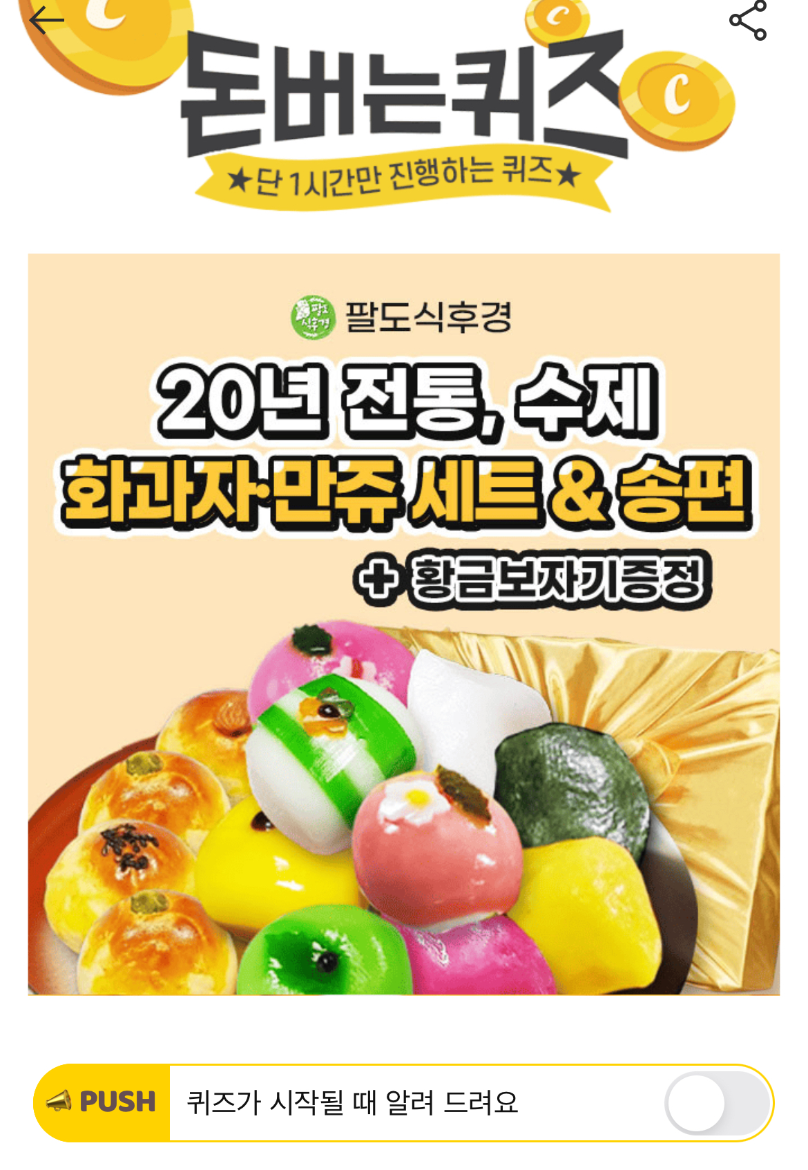 캐시워크 돈버는퀴즈 정답 팔도식후경 수제 화과자