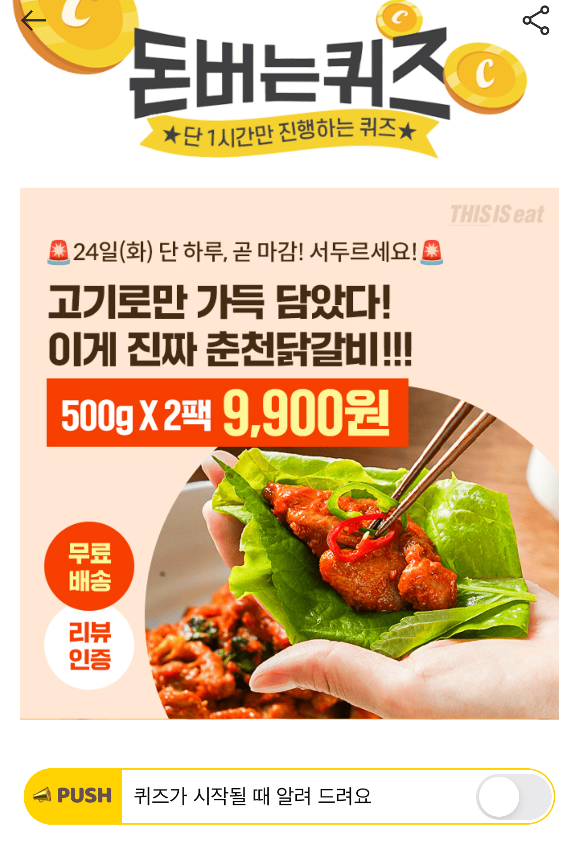 캐시워크 돈버는퀴즈 정답 디스이즈잇 춘천 닭갈비