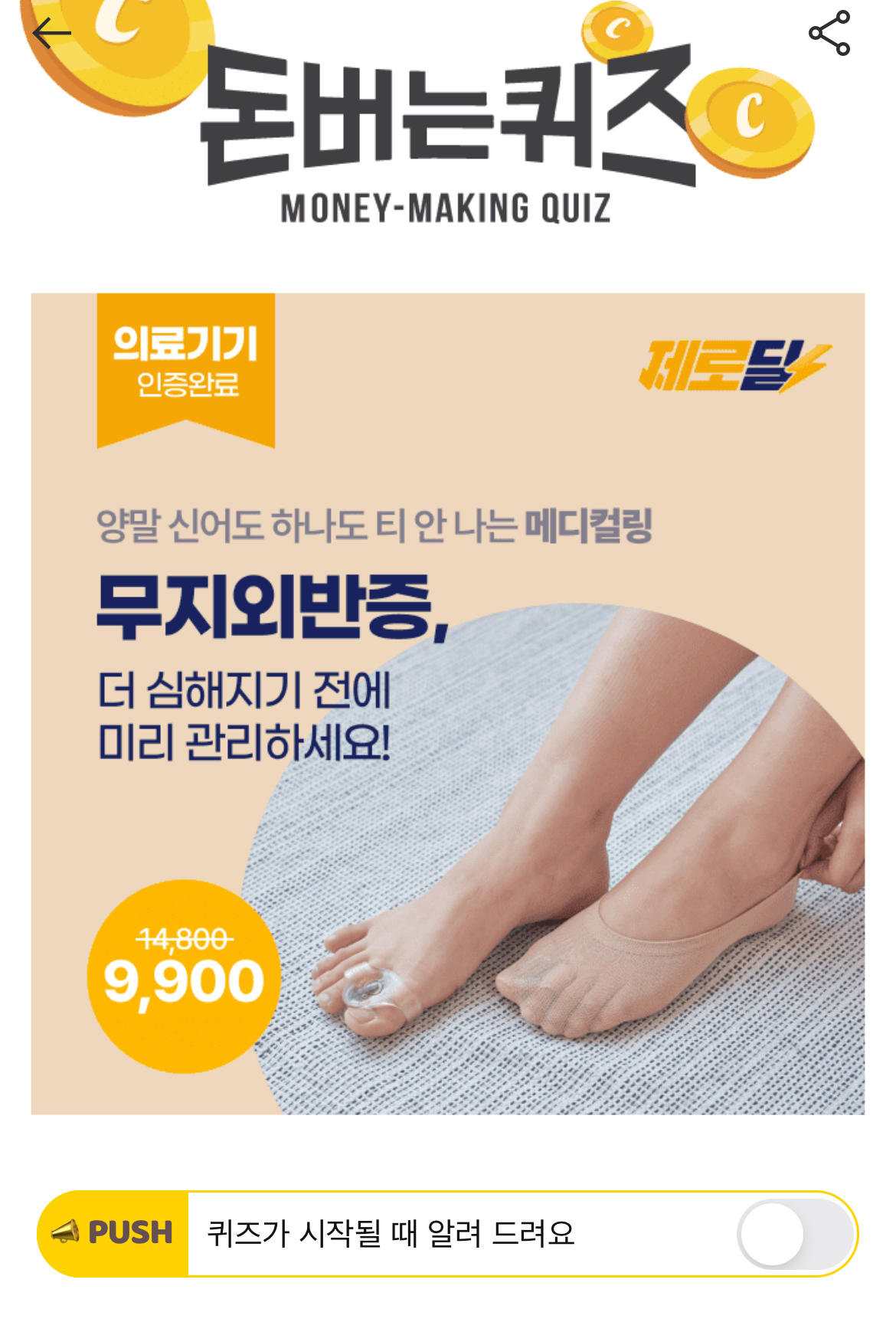 캐시워크 돈버는퀴즈 정답 쎄라풋 무지외반증 교정기