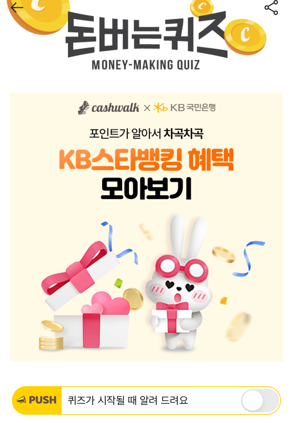 캐시워크 돈버는퀴즈 정답 스타뱅킹 매일걷기