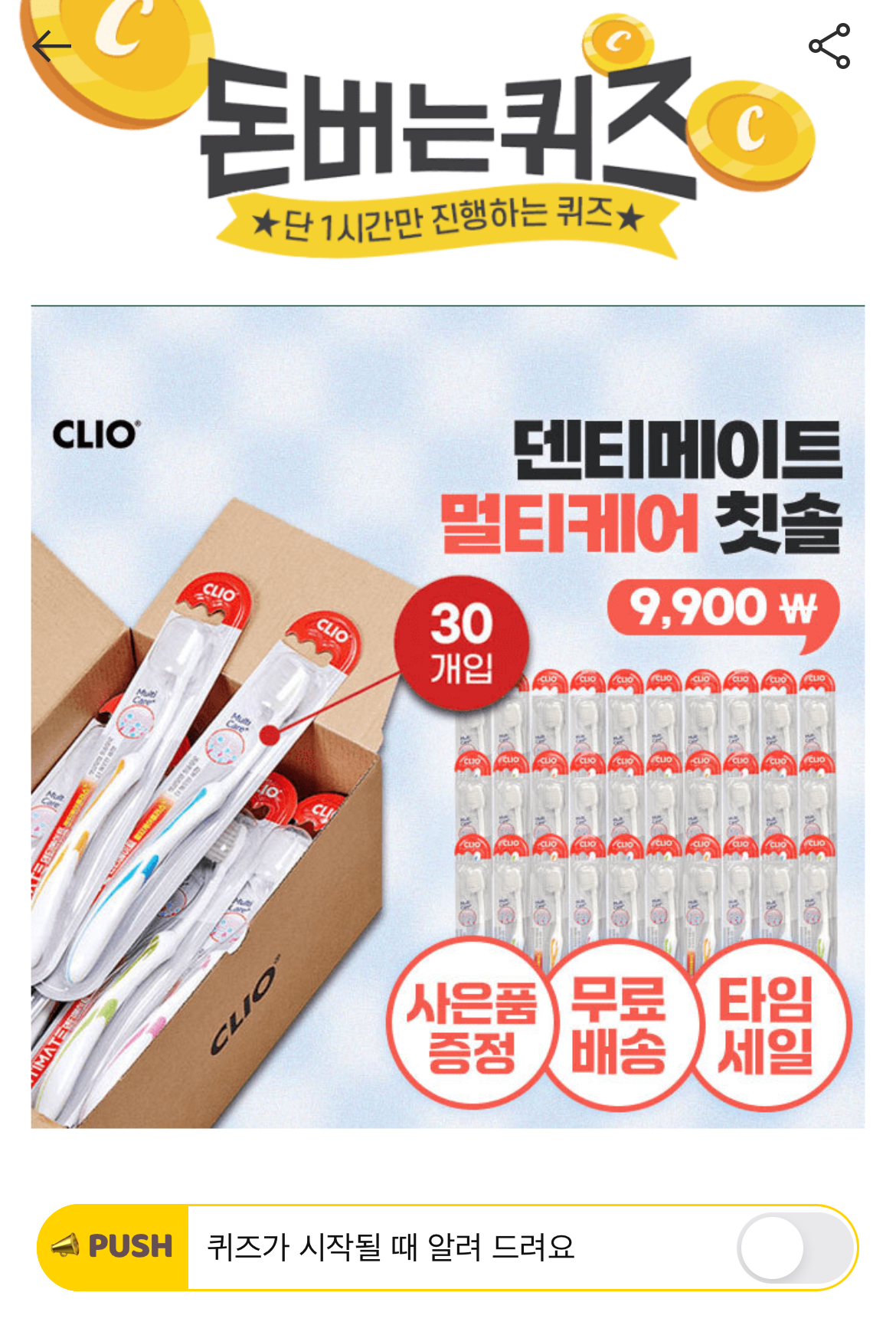 캐시워크 돈버는퀴즈 정답 크리오 멀티케어 칫솔