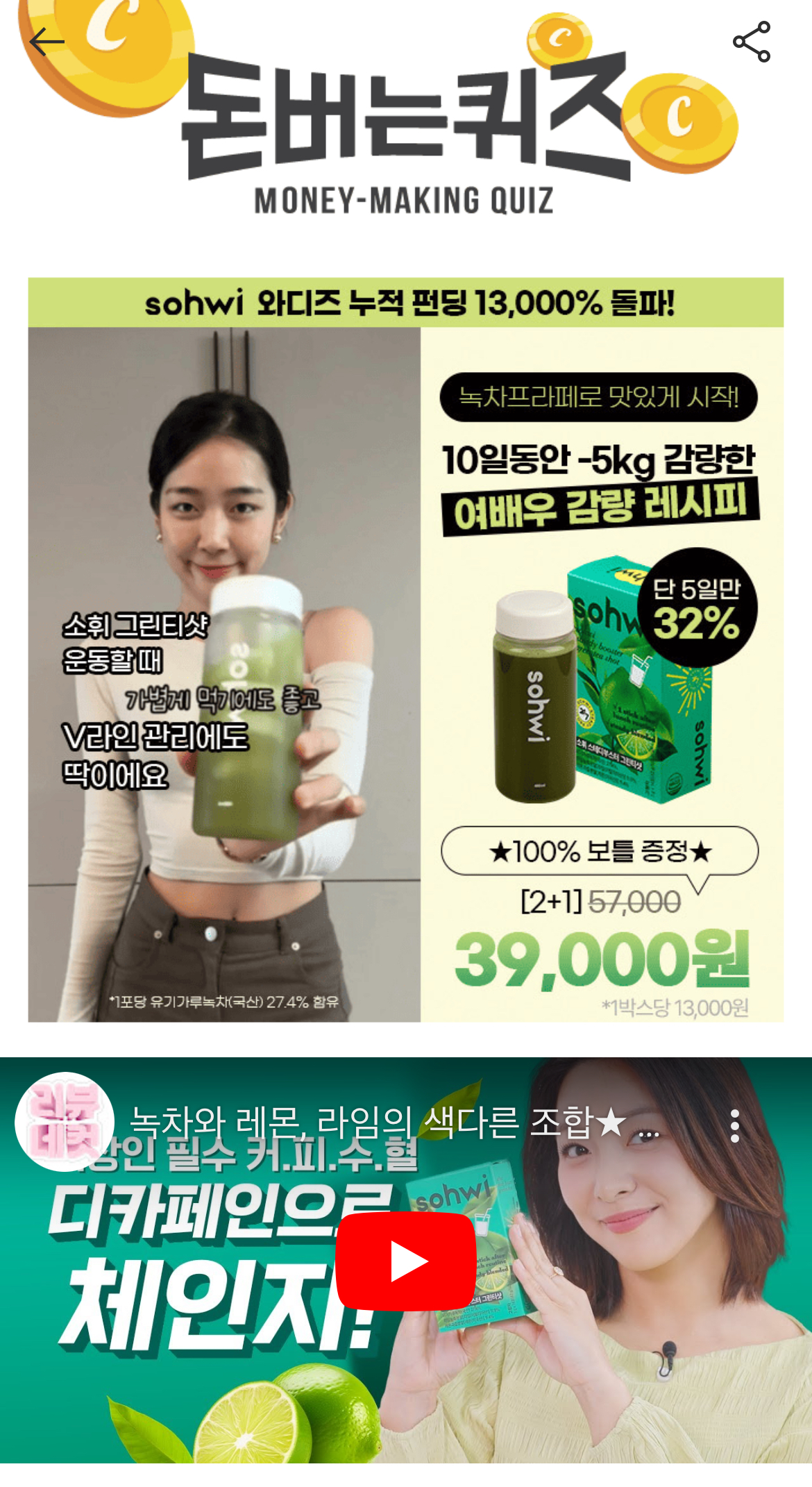 캐시워크 돈버는퀴즈 정답 소휘 그린티샷
