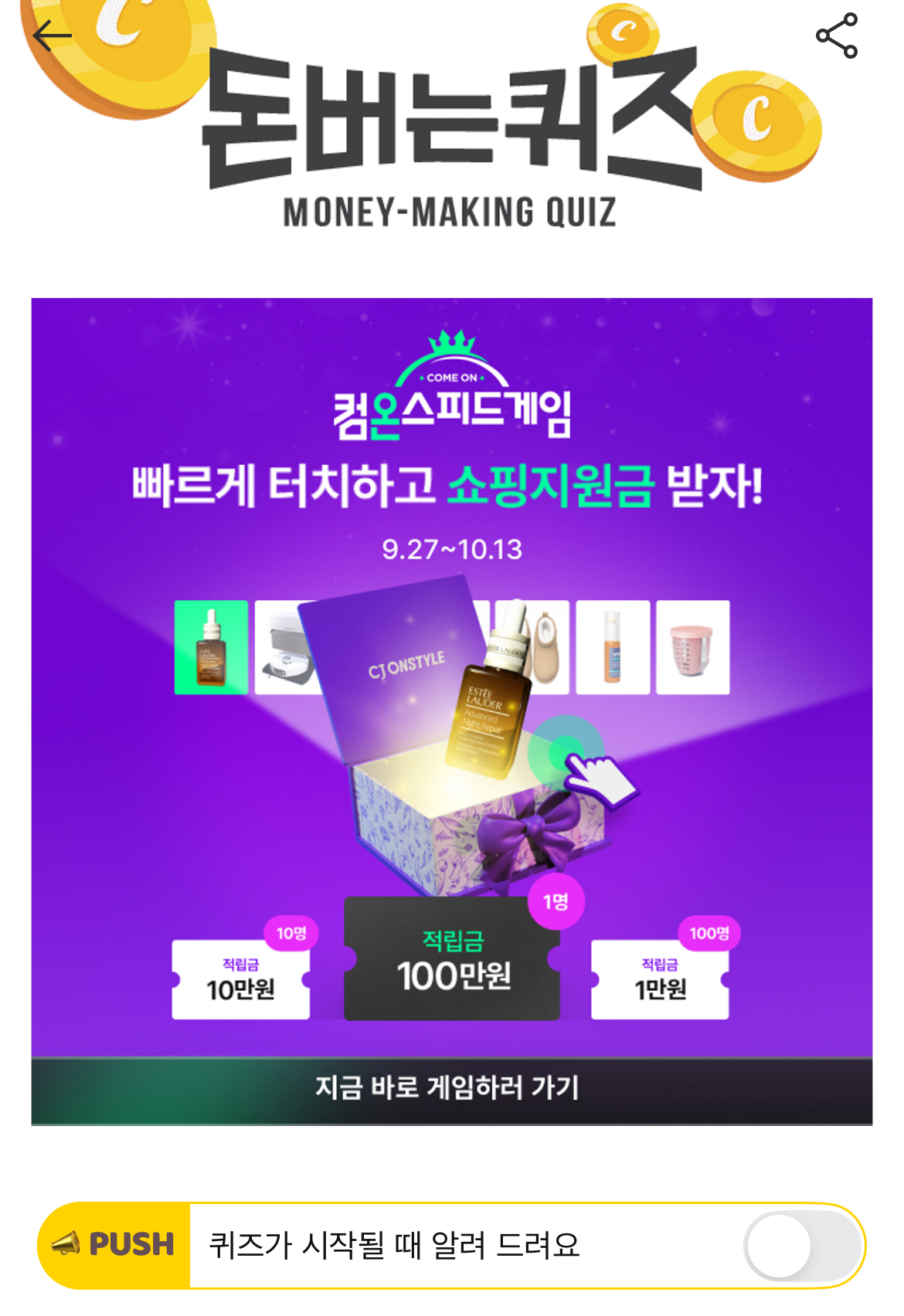 캐시워크 돈버는퀴즈 정답 CJ온스타일 컴온스타일