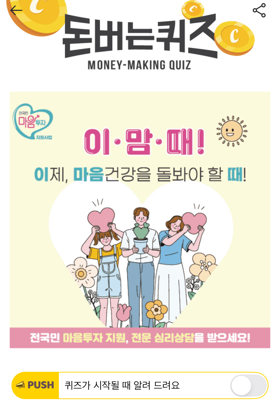 캐시워크 돈버는퀴즈 정답 전국민 마음투자 지원사업
