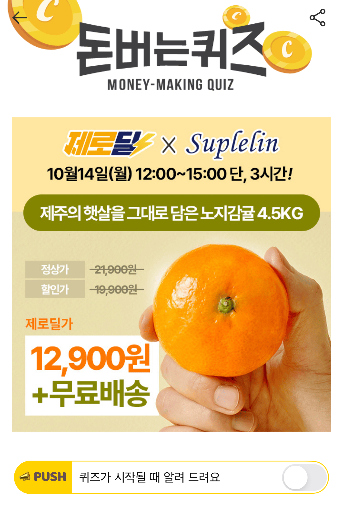 캐시워크 돈버는퀴즈 정답 캐시딜 타임특가 수플린 노지 감귤