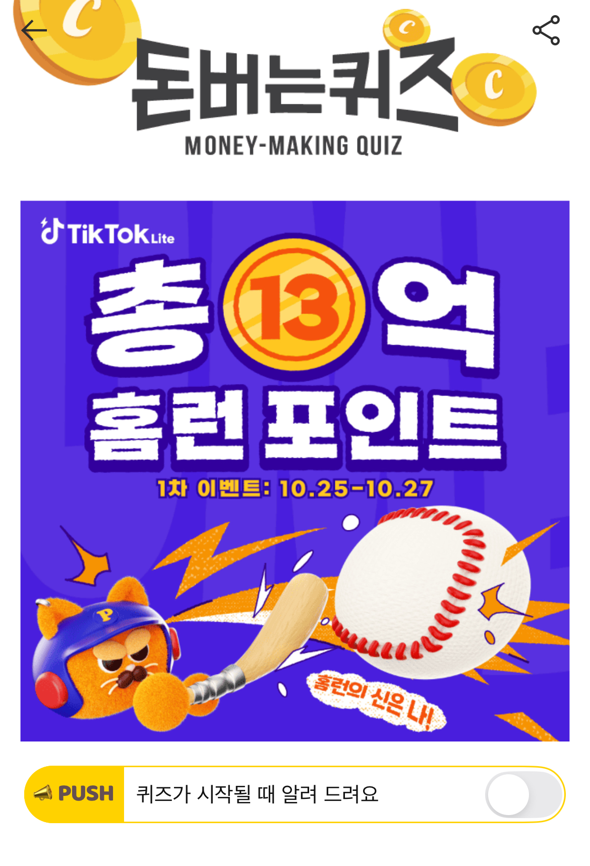 캐시워크 돈버는퀴즈 정답 틱톡라이트