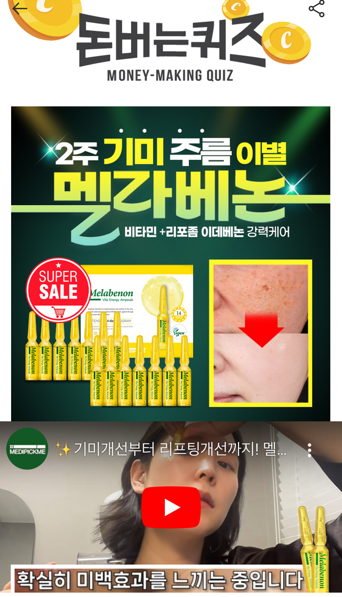 캐시워크 돈버는퀴즈 정답 메디픽미 멜라베논 ㄹㅍㅈ