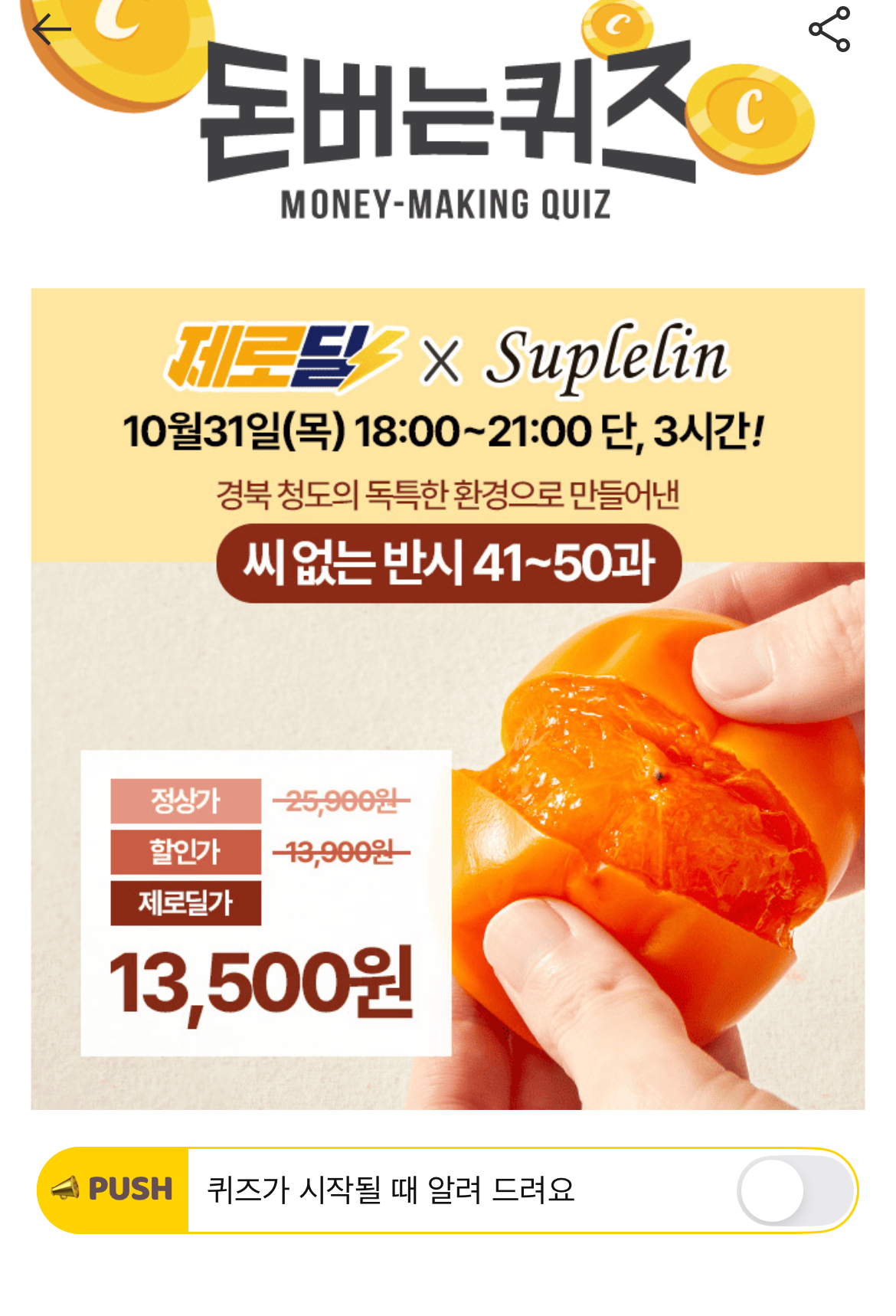 캐시워크 돈버는퀴즈 정답 캐시딜 수플린 씨없는 청도 반시