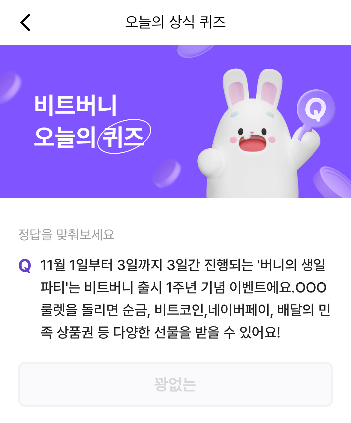 비트버니 오늘의퀴즈 정답 ㄲㅇㄴ
