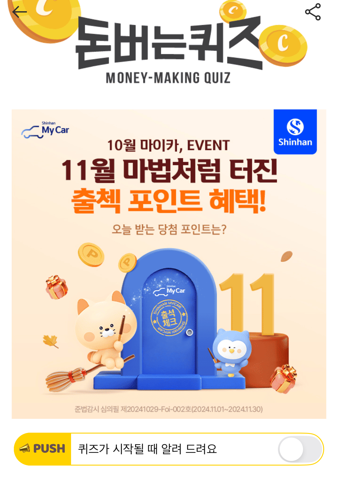 캐시워크 돈버는퀴즈 정답 신한마이카 ㄱㄷㄱㅅㅇㅇ