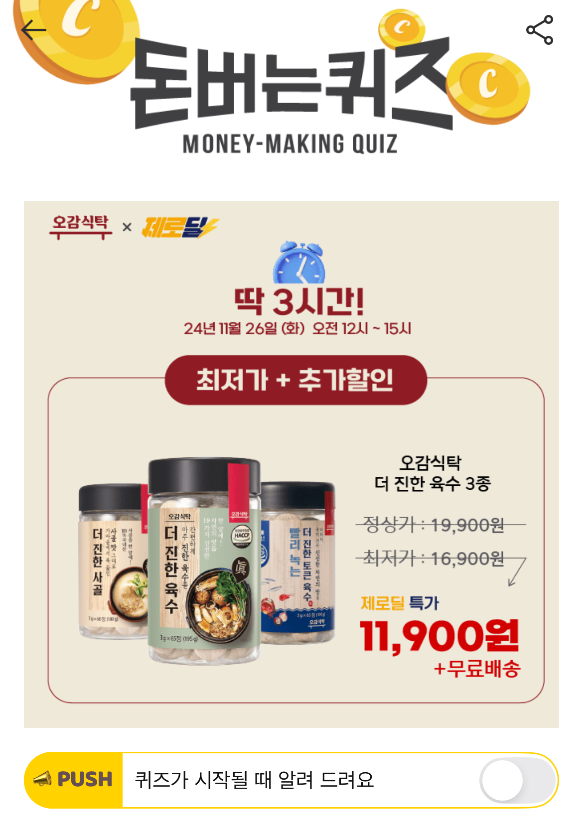 | 오늘 11월 26일 타임스프레드 용돈퀴즈 정답 PM12 발포로빼 (1) | 2024.11.26 |