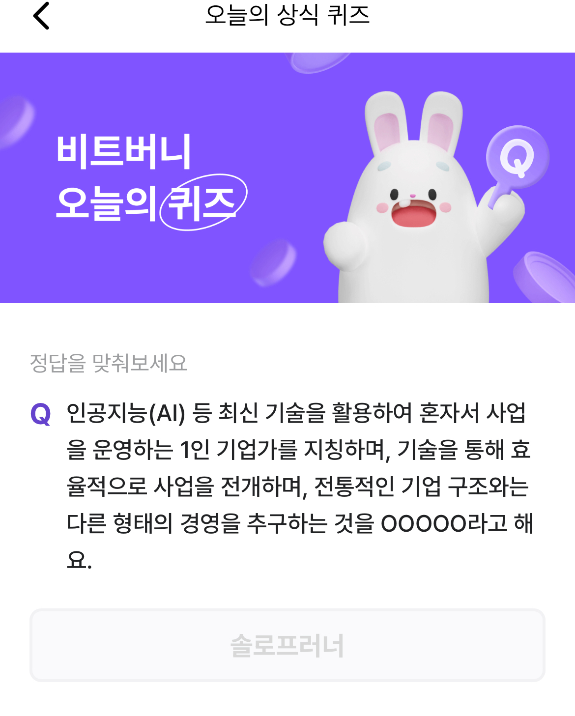 비트버니 오늘의퀴즈 정답 ㅅㄹㅍㄹㄴ