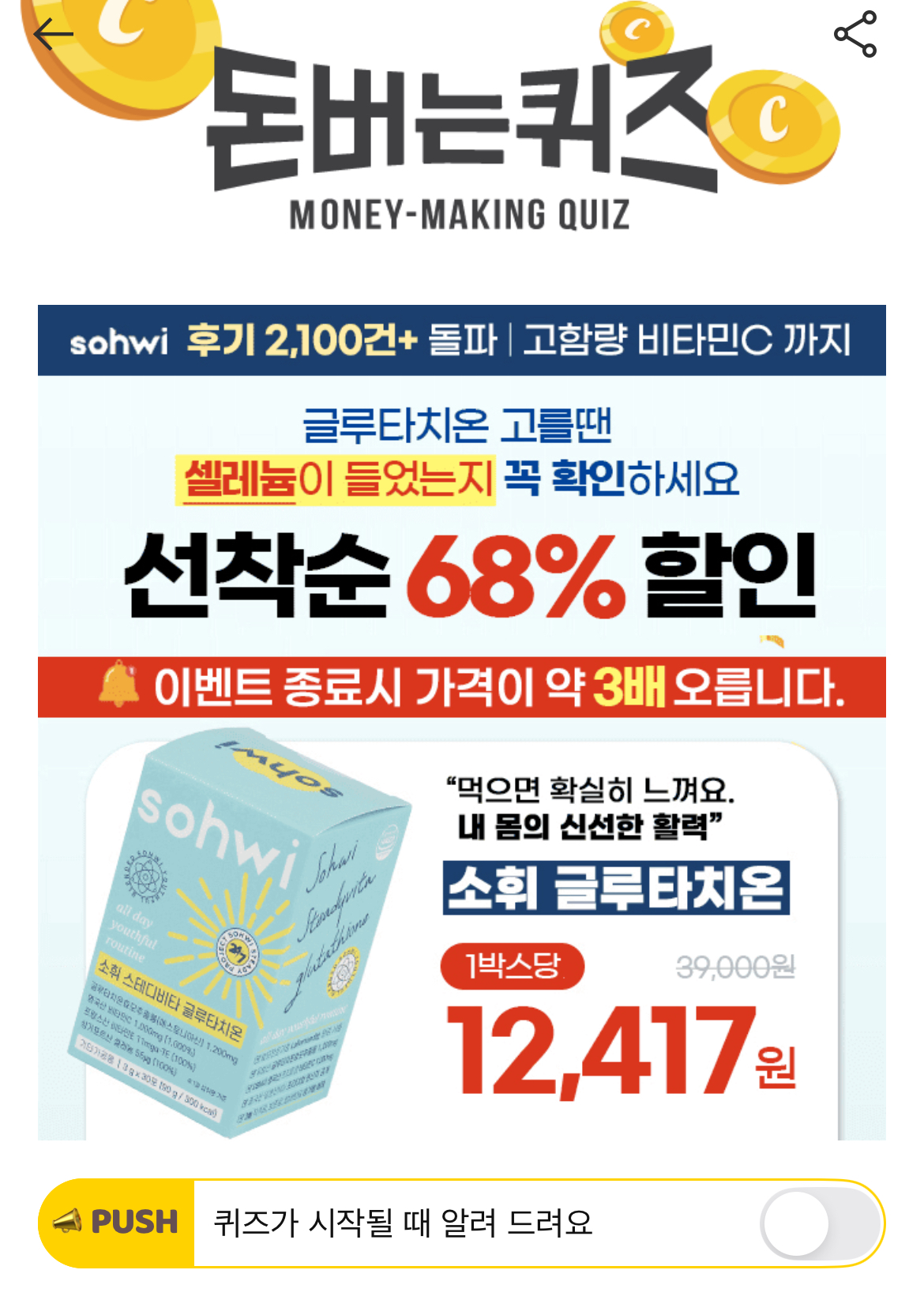 캐시워크 돈버는퀴즈 정답 소휘 글루타치온
