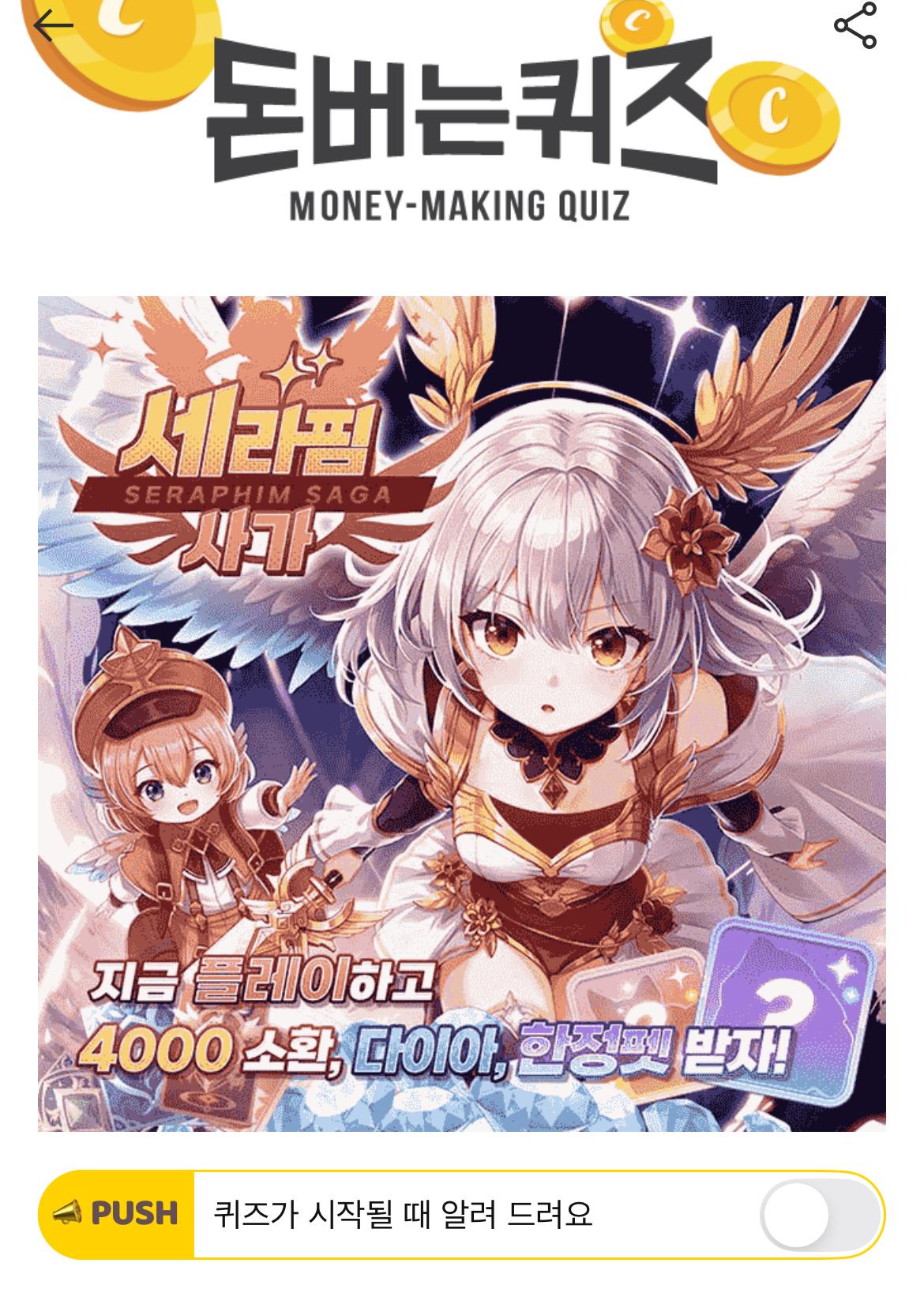 캐시워크 돈버는퀴즈 정답 돈버는미션 세라핌 사가