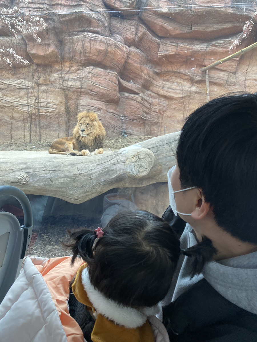 수컷사자 한마리가 어슬렁어슬렁 다가오니까 우리아기가 무서워서 울었어요. ㅋㅋ