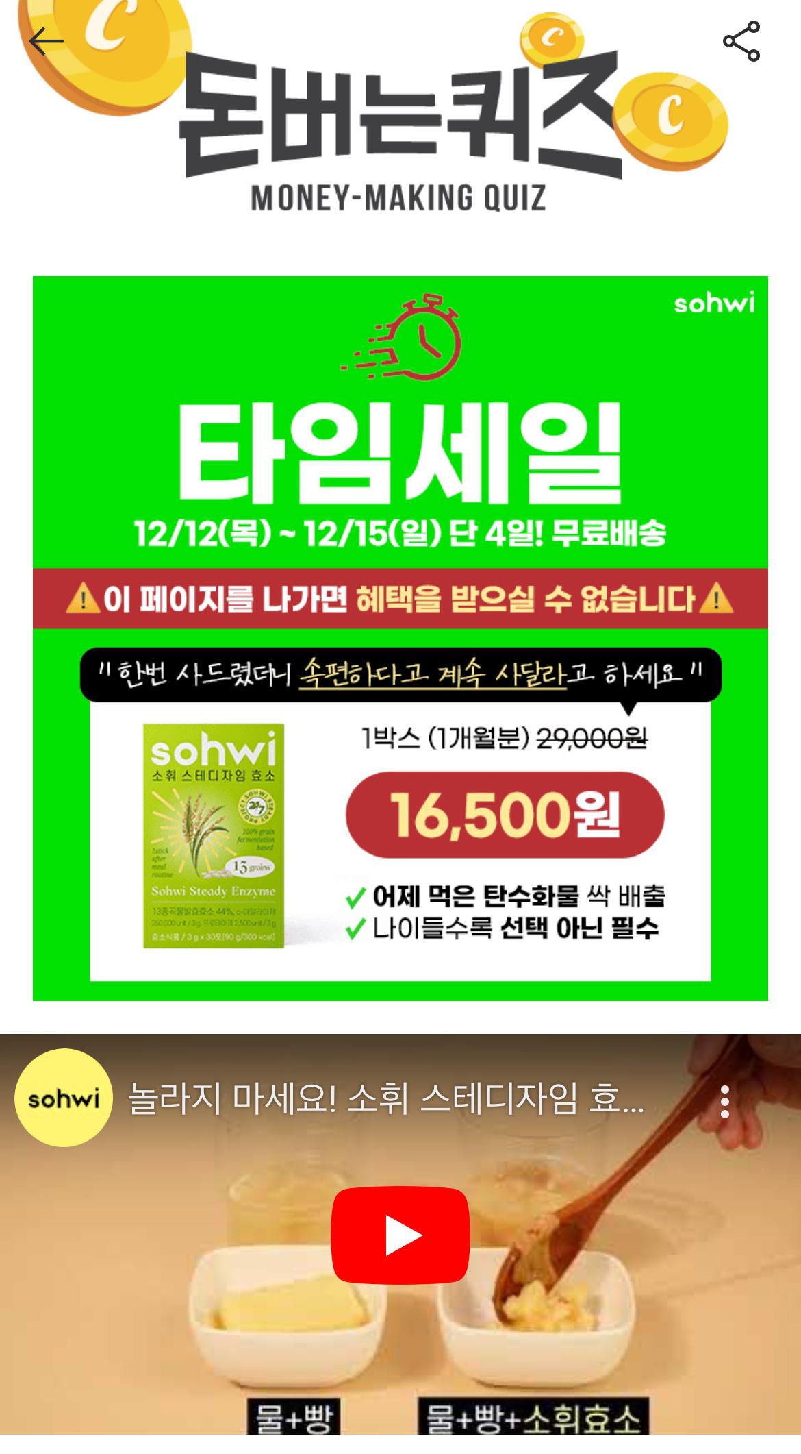 캐시워크 돈버는퀴즈 정답 소휘 효소