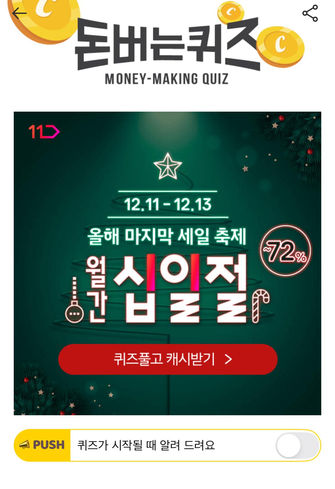 캐시워크 돈버는퀴즈 정답 11번가 연말 감사제 ㅎㄱㅇㅅ