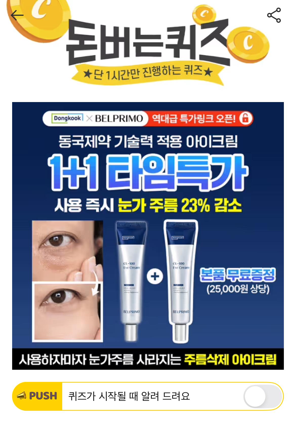 캐시워크 돈버는퀴즈 정답 동국제약 벨프리모 CL-100 아이크림