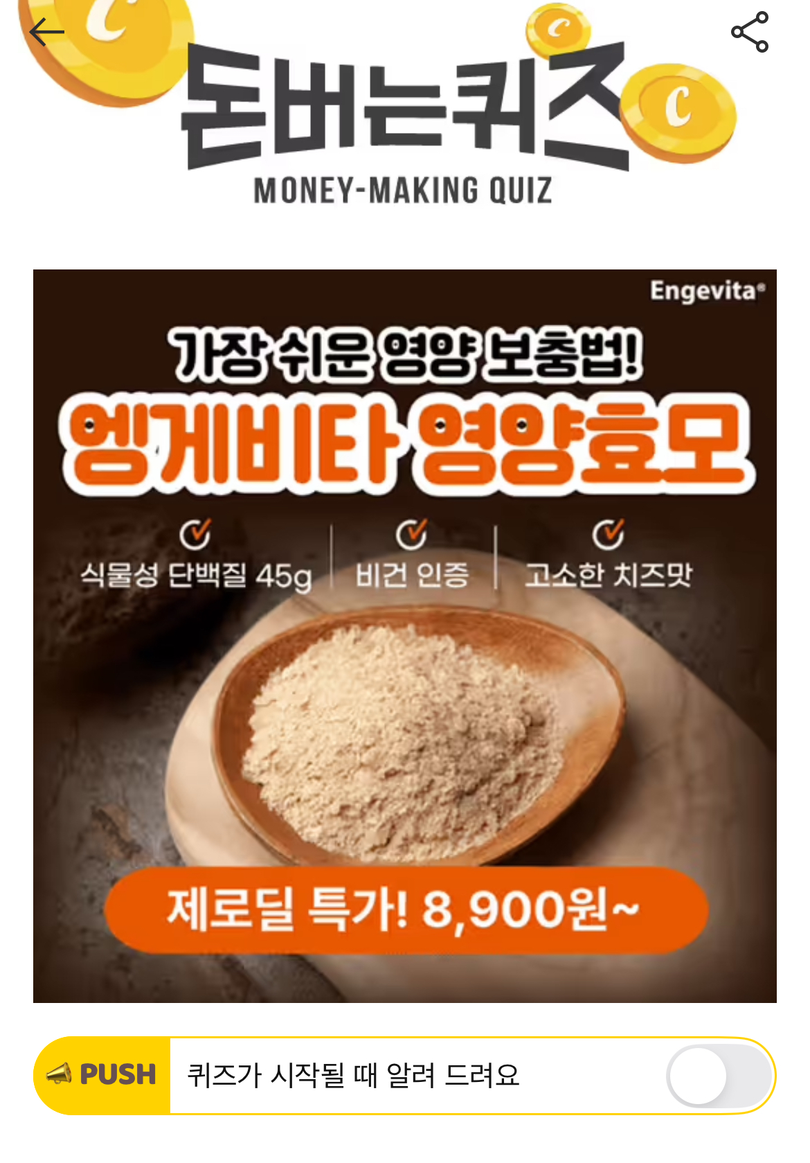 캐시워크 돈버는퀴즈 정답 캐시딜 타임특가 엥게비타 영양효모