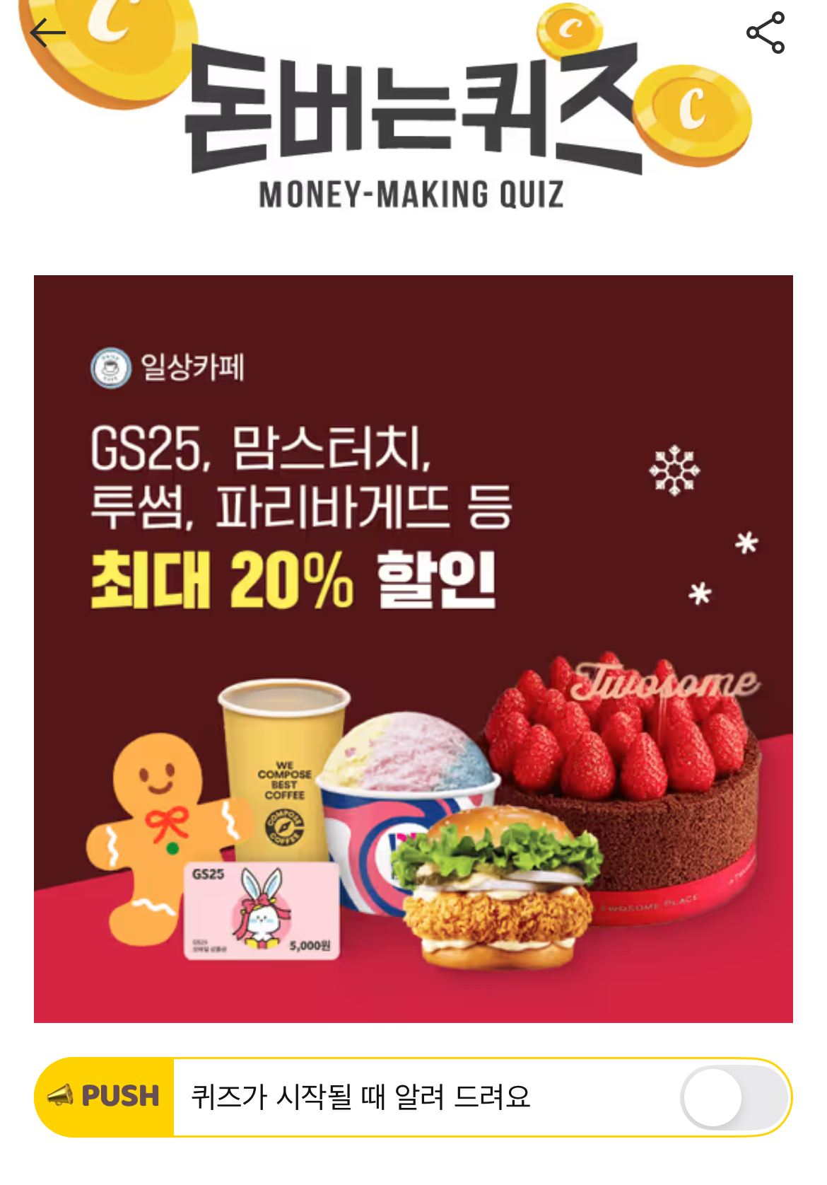 캐시워크 돈버는퀴즈 정답 돈버는미션 일상카페 ㅇㄴㅎㅇ