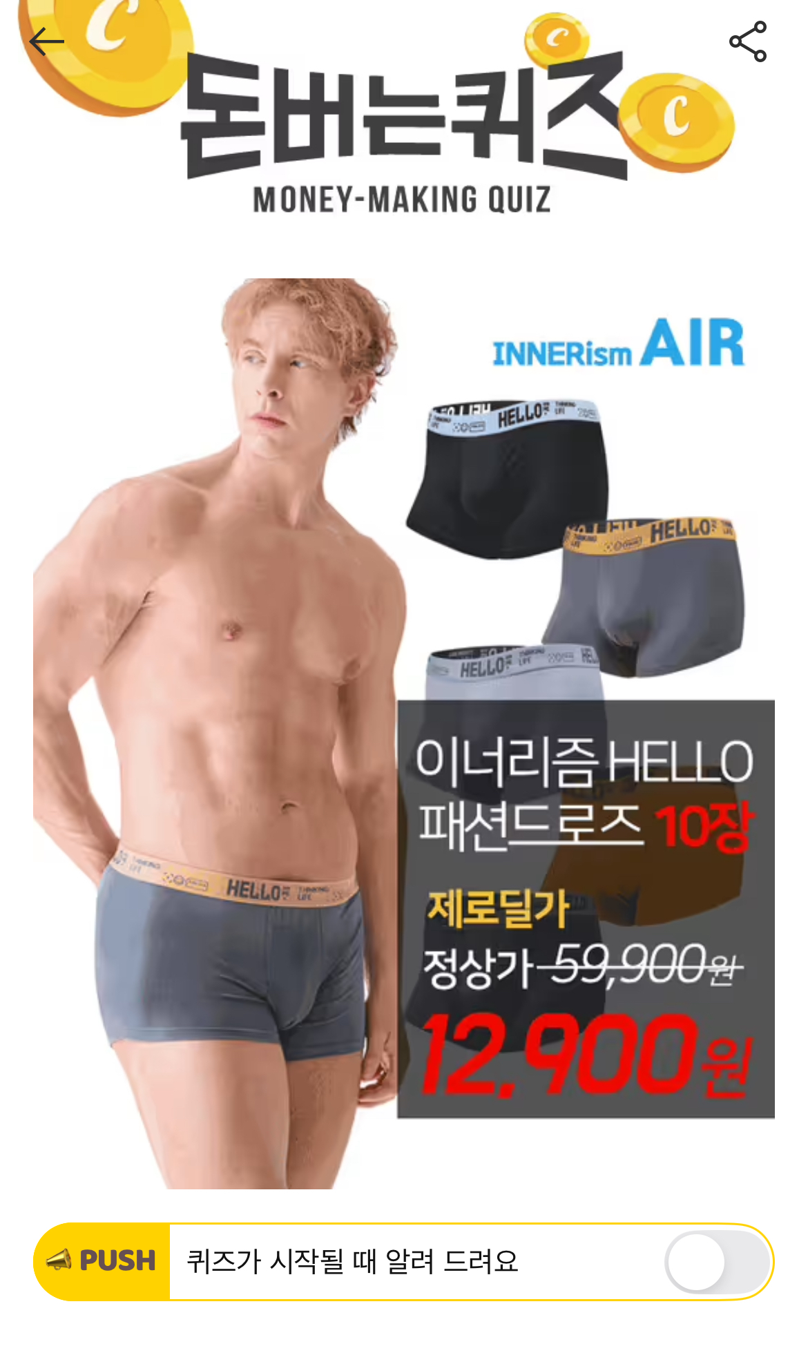 단 3시간 동안 진행되는 "캐시딜" 타임특가에서 놀라운 착용감, HELLO 패션드로즈 10장이 역대급 할인으로 OOOOO원+무료배송에 진행됩니다. 빈칸에 들어갈 숫자는 무엇일까요?