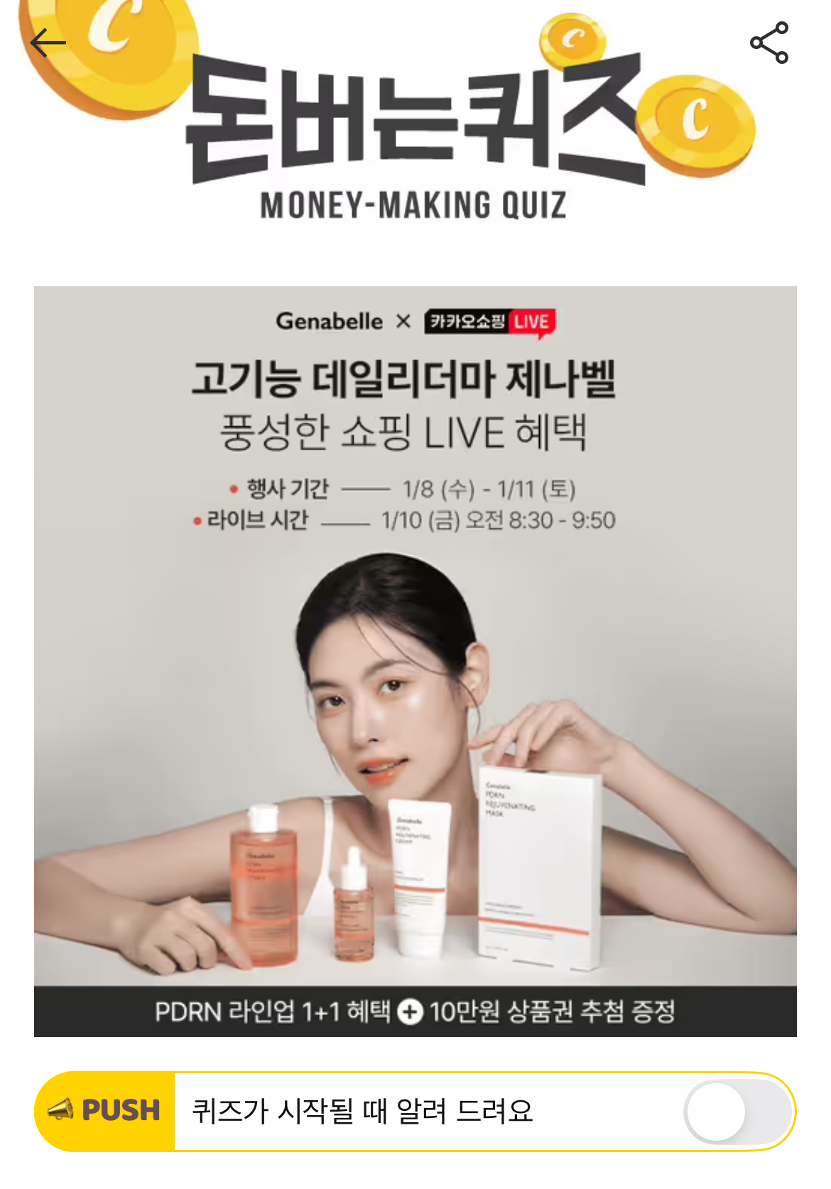 제나벨 2025 새해맞이 카쇼라고기능 데일리더마 제나벨의 풍성한 라이브 방송 혜택! PDRN&광채미백 1+1 특가 카카오페이로 결제 시 7% 즉시 할인! 방송 중 선착순 500명 제나벨 메쉬OOO 증정, 5만원 이상 구매 시 PDRN 토너 미니어처와 마스크팩 5매, 8만원 이상 구매 시 신세계 상품권 10만원권 당첨 기회까지! (혜택 탭 확인!)