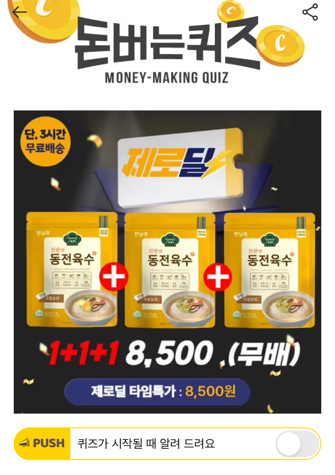 캐시워크 돈버는퀴즈 정답 제로딜 타임특기 오카프레시 한닢쿡 코인육수