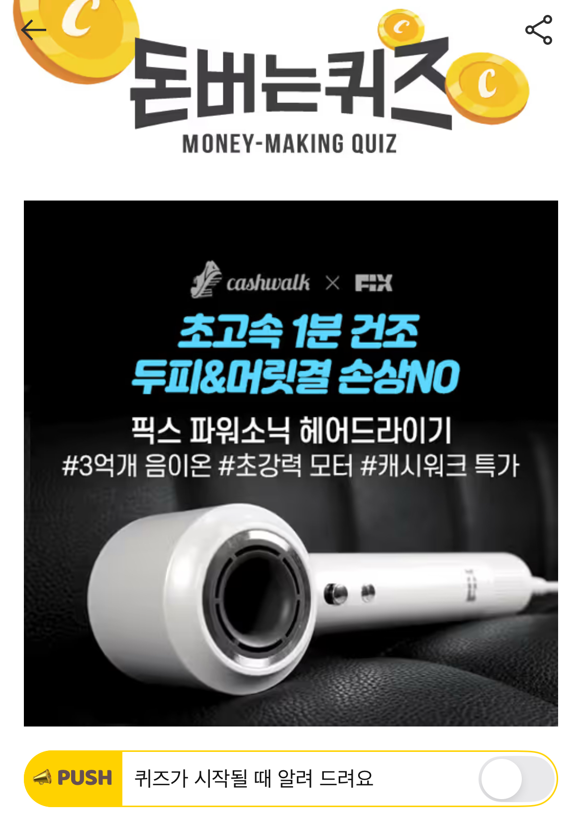 캐시워크 돈버는퀴즈 정답 픽스 파워소닉 드라이기